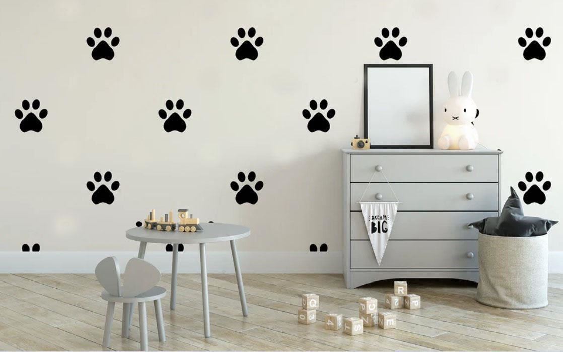 Samolepky s motivem psích tlapek ozdobí každý obyčejný pokoj a promění jej v krásné útulné dětské království.