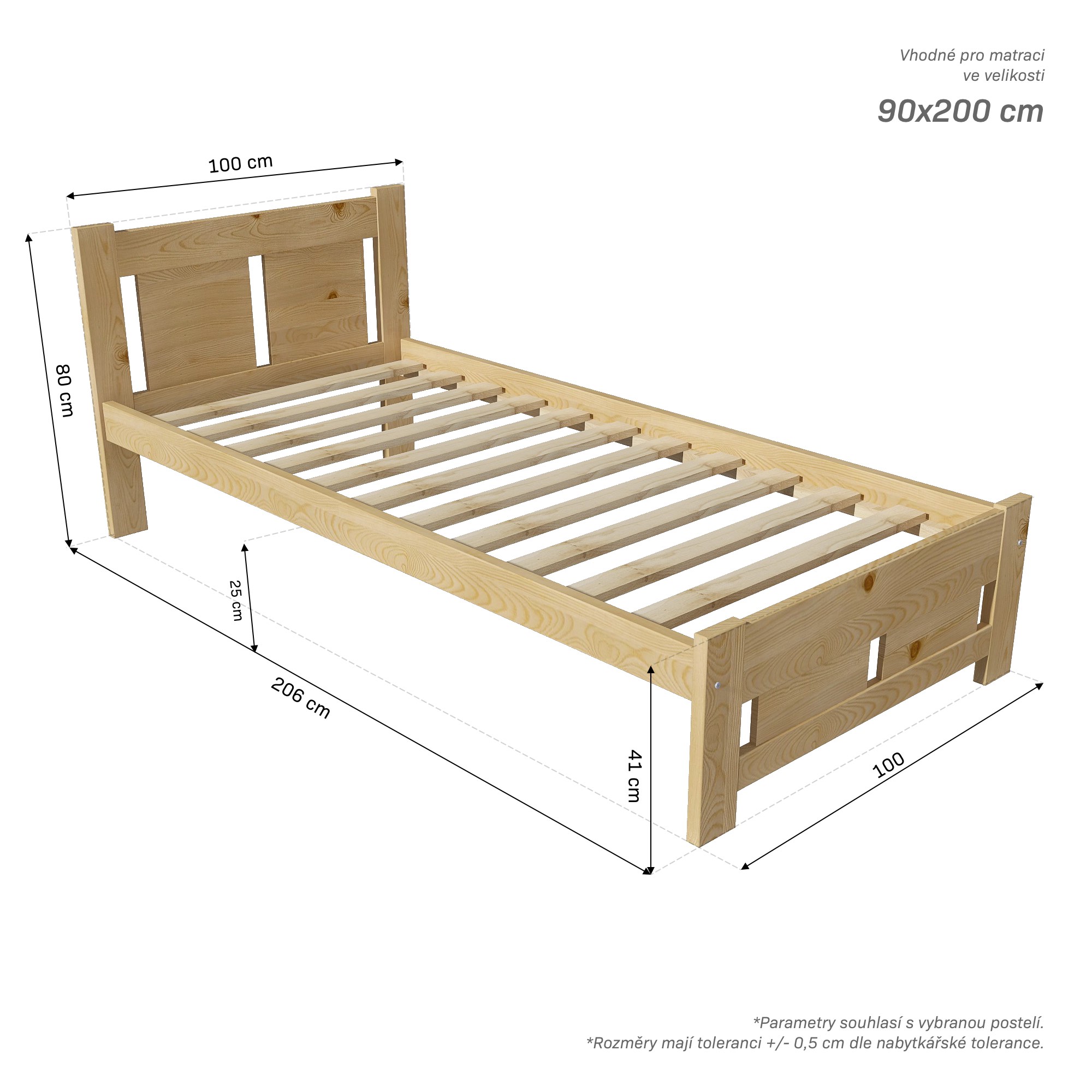PCZ Postel z masivu Kory 90x200 cm - barva Přírodní