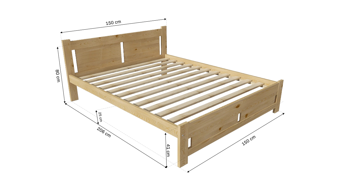 PCZ Postel z masivu Kory 140x200 cm - barva Přírodní