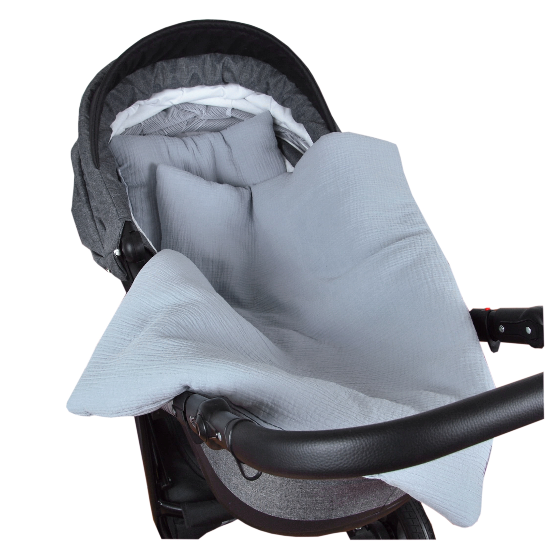 BBL Mušelínový polštářek + deka do kočárku - šedá