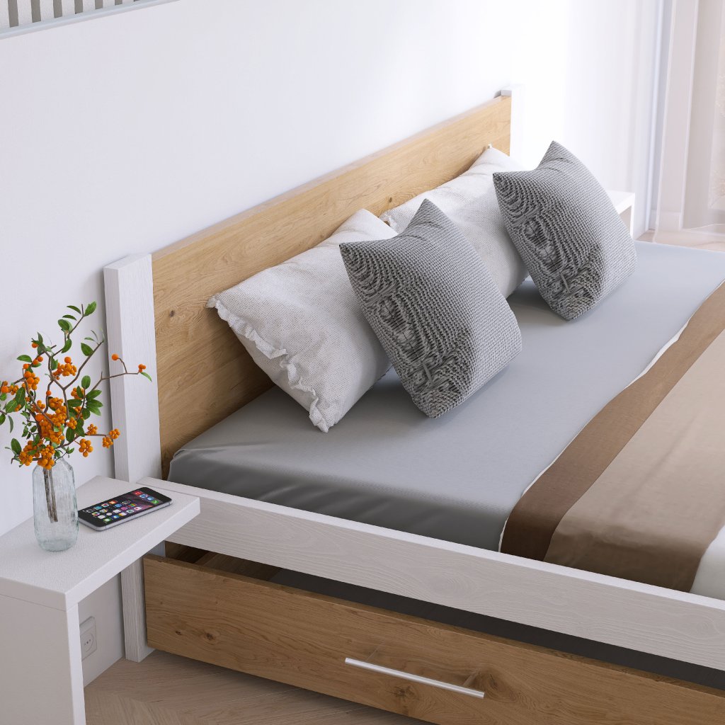 Maxi Postel z masivu Iris 120x200 cm, BÍLÁ/Dub Artisan