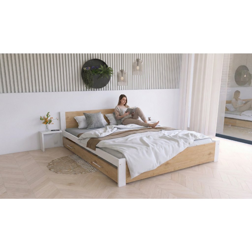Maxi Postel z masivu Iris 140x200 cm, BÍLÁ/Dub Artisan