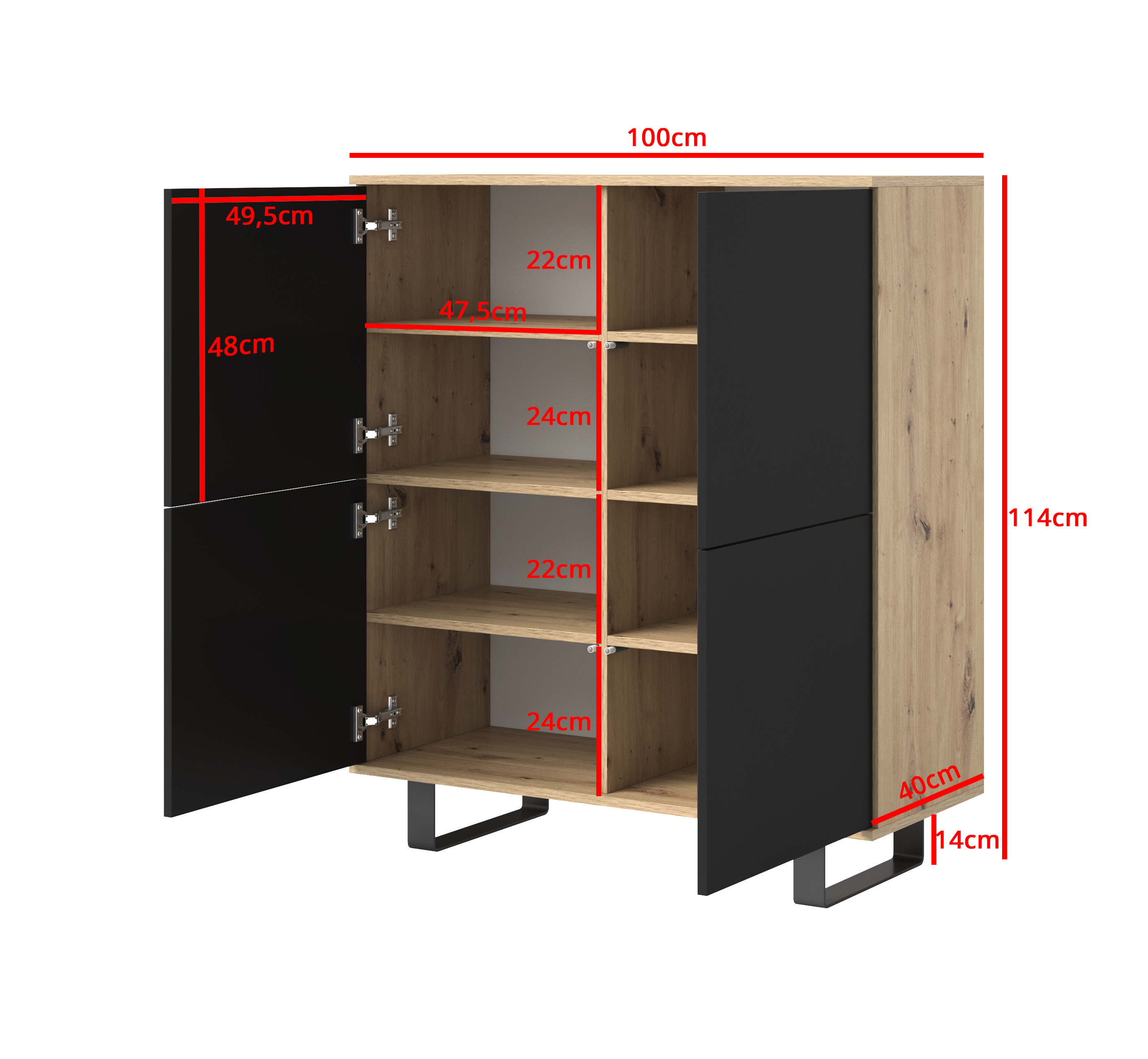 Eka Komoda s kovovými nohami EMI 4D 100 cm Barva dřeva: Dub Artisan