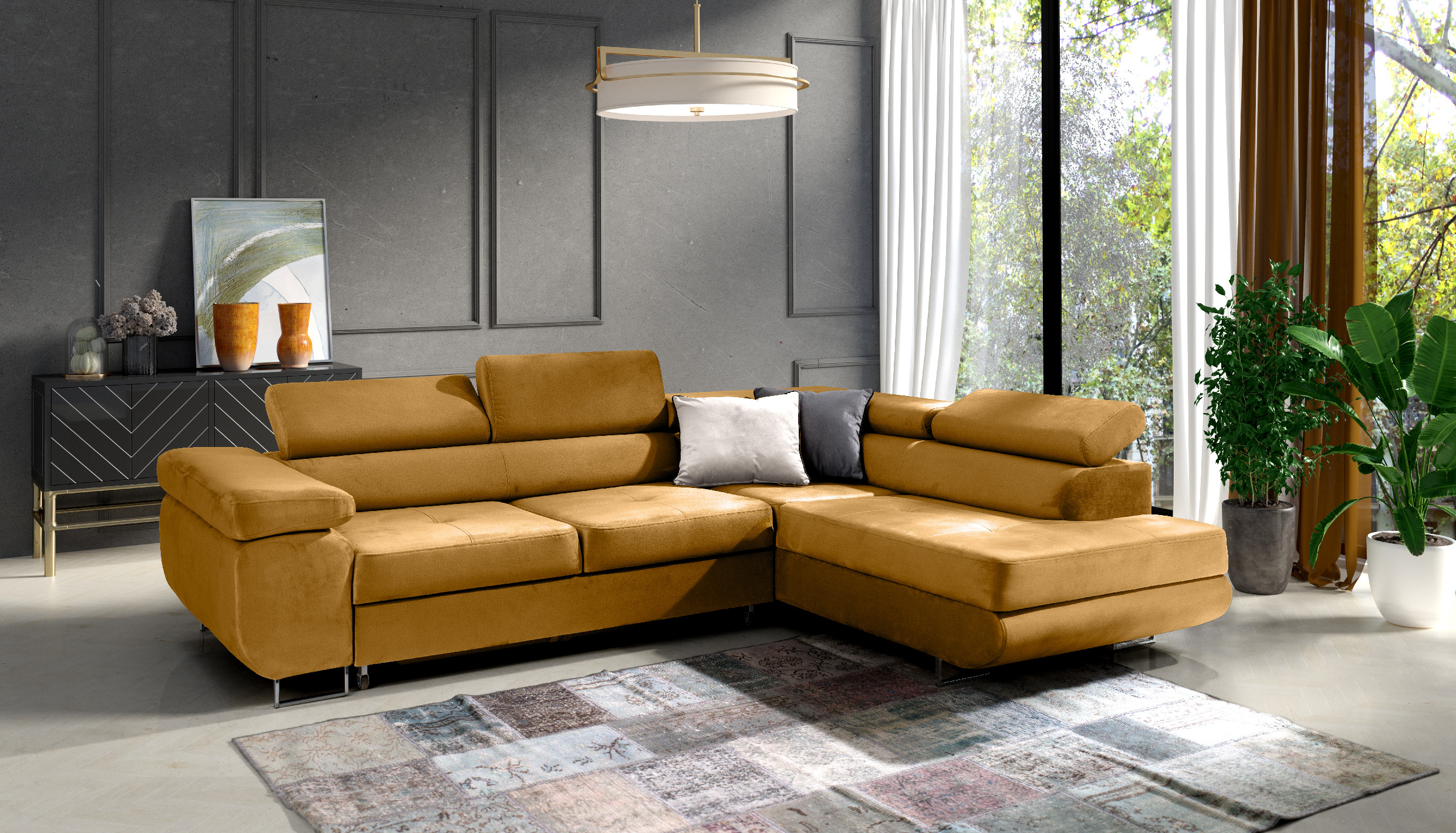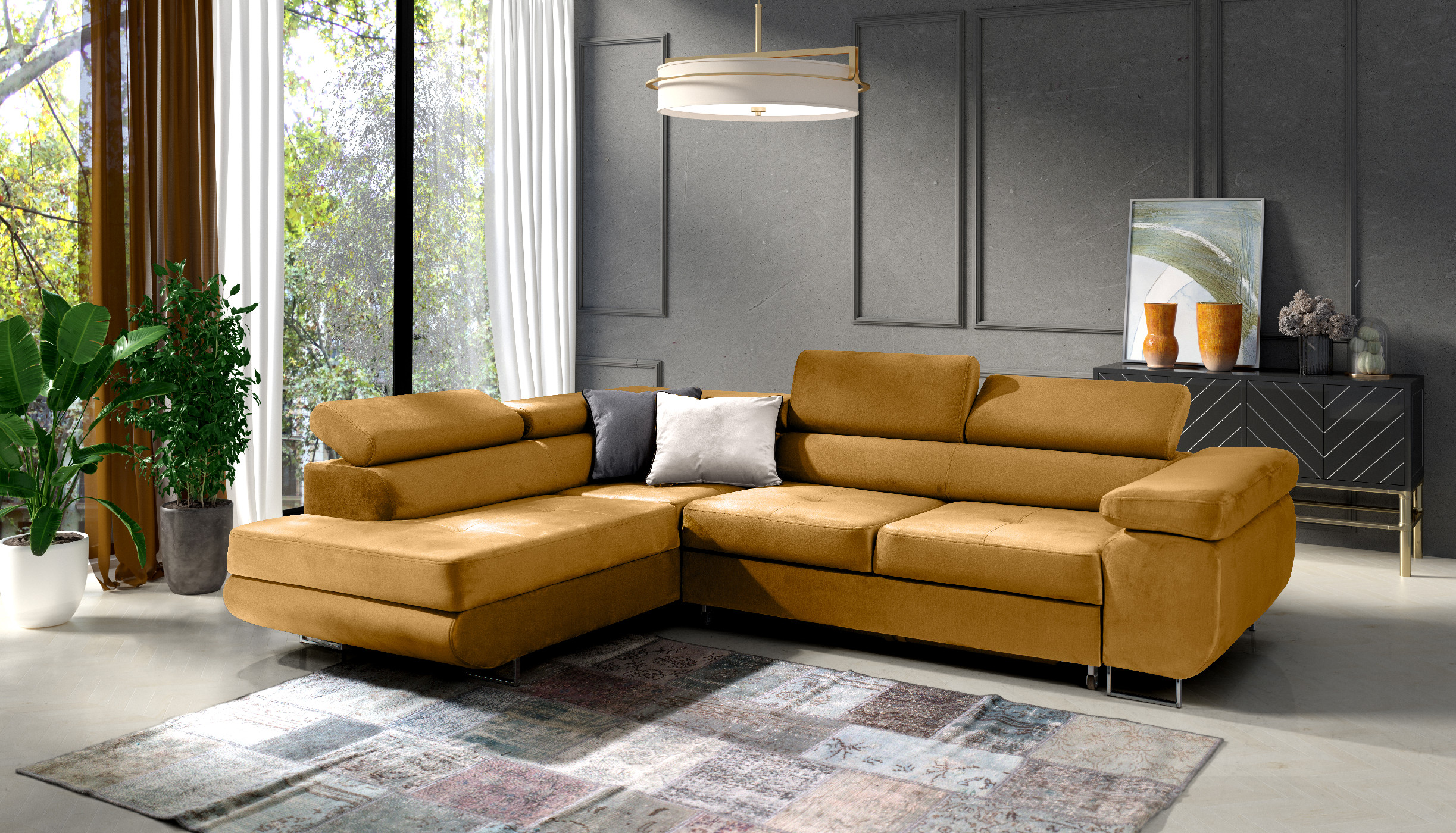 Eka Rohová sedačka URUS, 271 cm Roh sedačky: Levý, Barva látky: Žlutá (Trinity 18)