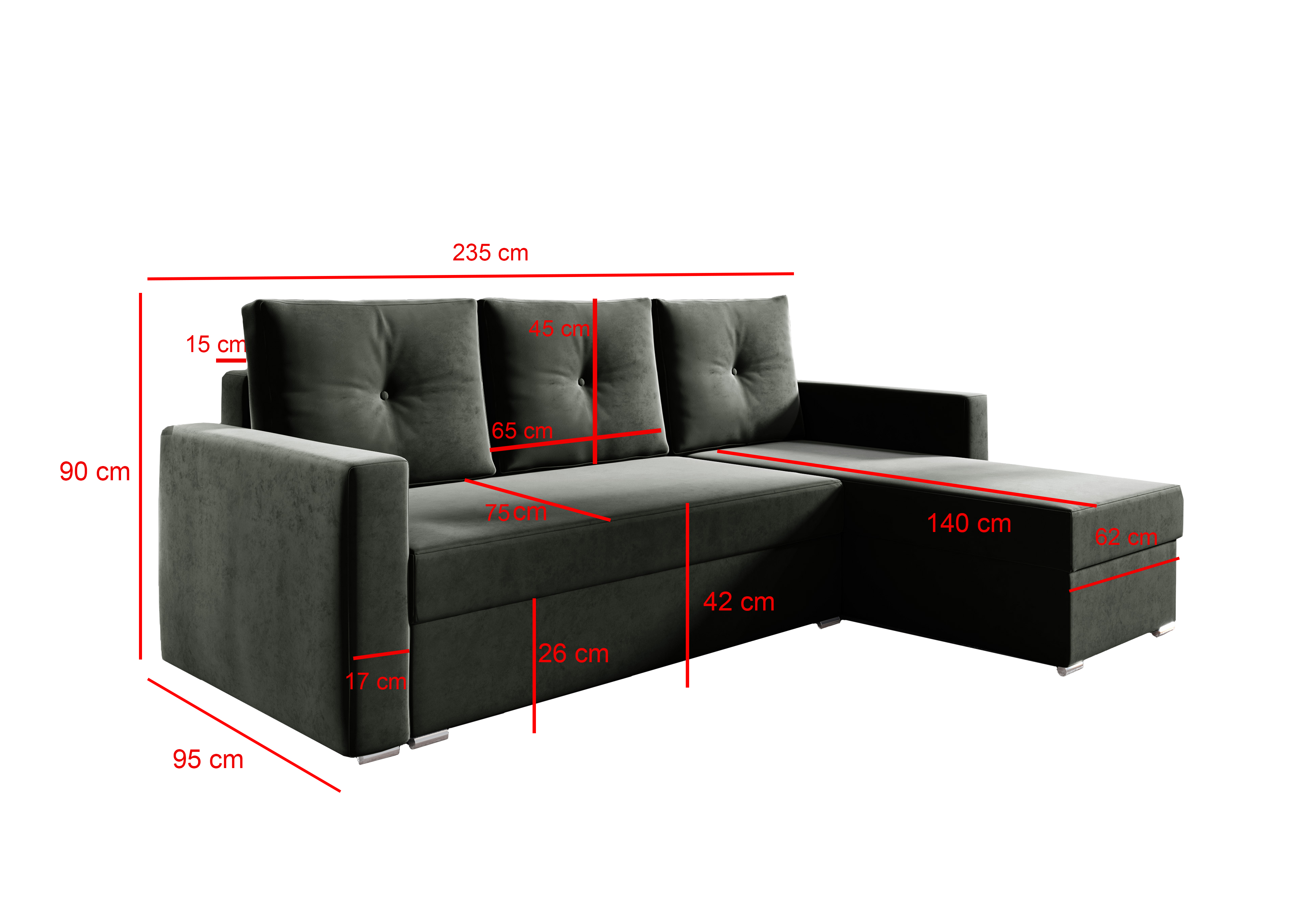 Sedačka ARIEL ve tvaru L je spolehlivým parťákem do každého obýváku. Nabízí spoustu místa pro pohodlné sezení pro rodinu, návštěvy, ale i chvíle, kdy chceš jen natáhnout nohy a užívat si klid. Potahy jsou ušité z tkanin s certifikací OEKO-TEX®, takže si můžeš být jistý, že jsou šetrné k tobě i k přírodě. A aby ladila i s tvým vkusem? Vyber si barvu látky – sedačku nabízíme v několika elegantních variantách. ️ Pohodlí pro každý den ️ Stále místo k relaxaci Řešení s úložným prostorem Výběr látky Pohodlí na každý den ✨ Elegantní vzhled Jednoduchá montáž V balení najdeš: Doprava až domů Podělte se s námi o Váš názor. Vaše zkušenost pomůže ostatním zákazníkům při výběru té správné postele pro jejich pohodlný spánek. Sedačka je dodávána bez dekorací zobrazených na ilustračních fotografiích. Napište nám, rádi poradíme s čímkoli, co vás zajímá.Pohodlí ve tvaru L(ásky) k odpočinku a relaxu