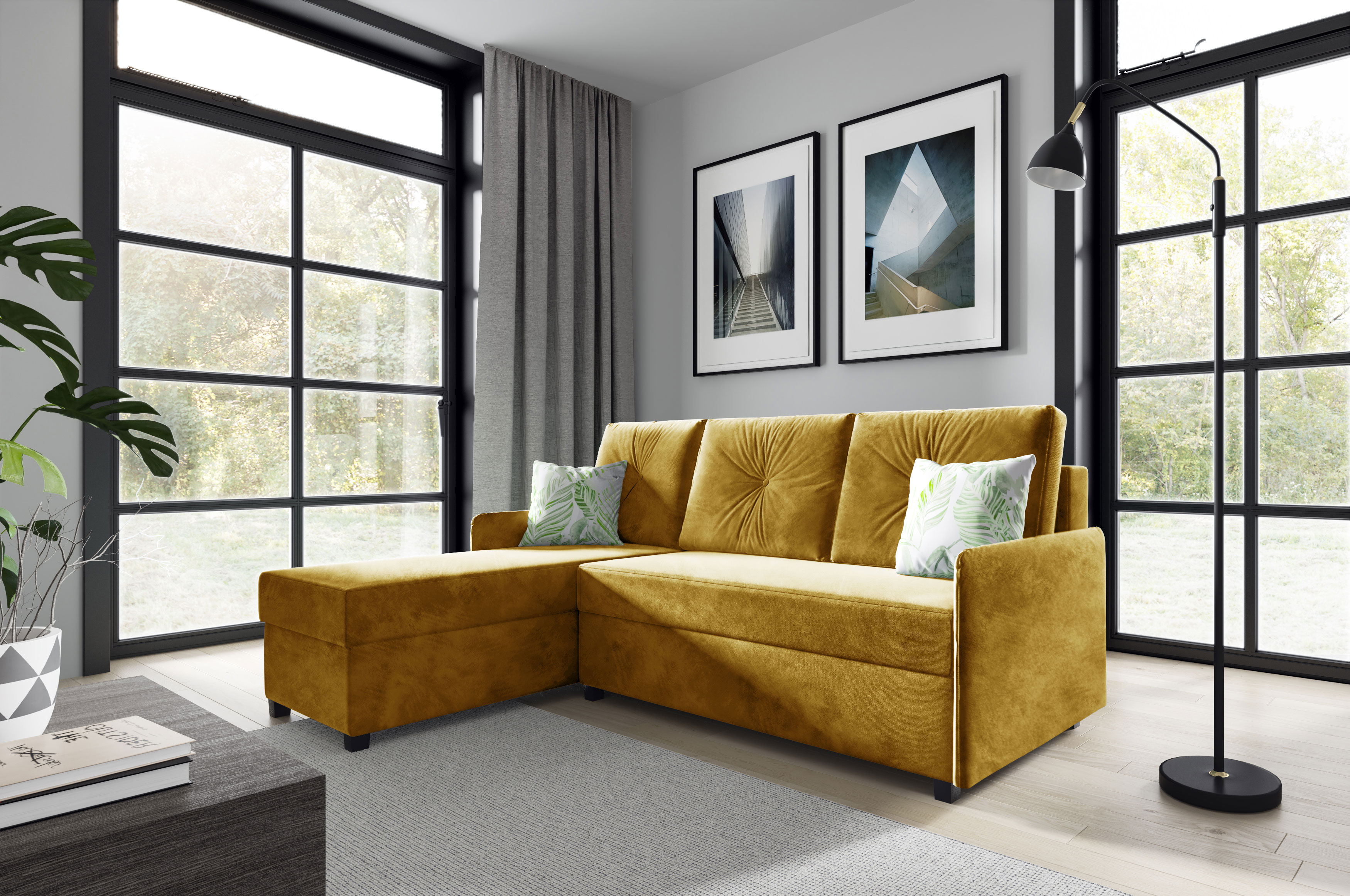 Eka Rohová sedačka FEMINI, 210 cm Roh sedačky: Pravý, Barva látky: KRONOS 01 (Žlutá)