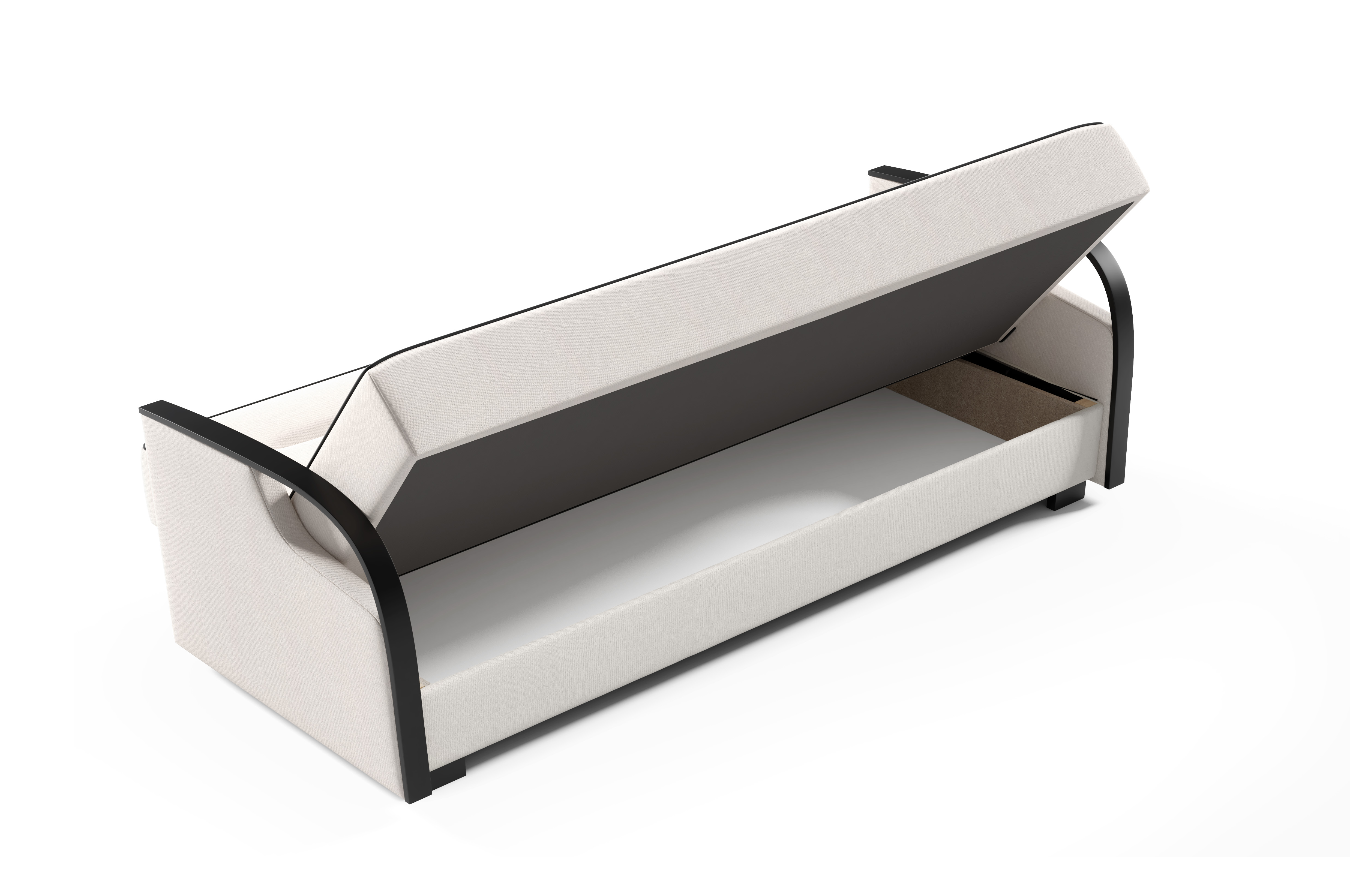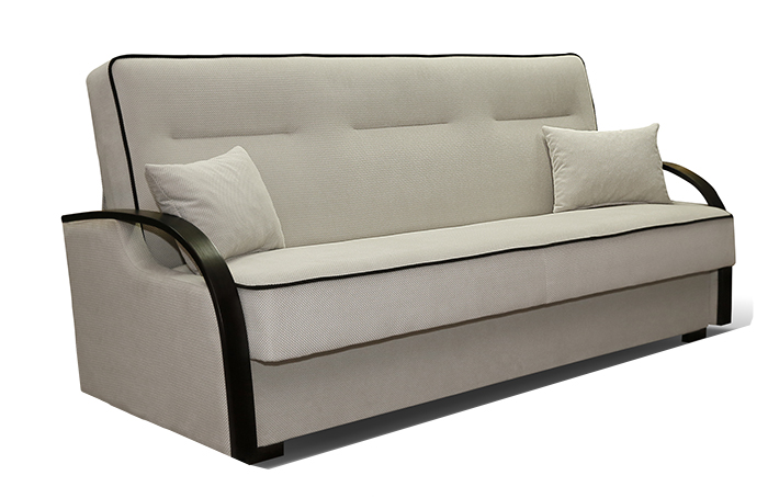 Korpus pohovky, soustružené dřevěné nožky, spojovací materiál a montážní návod.