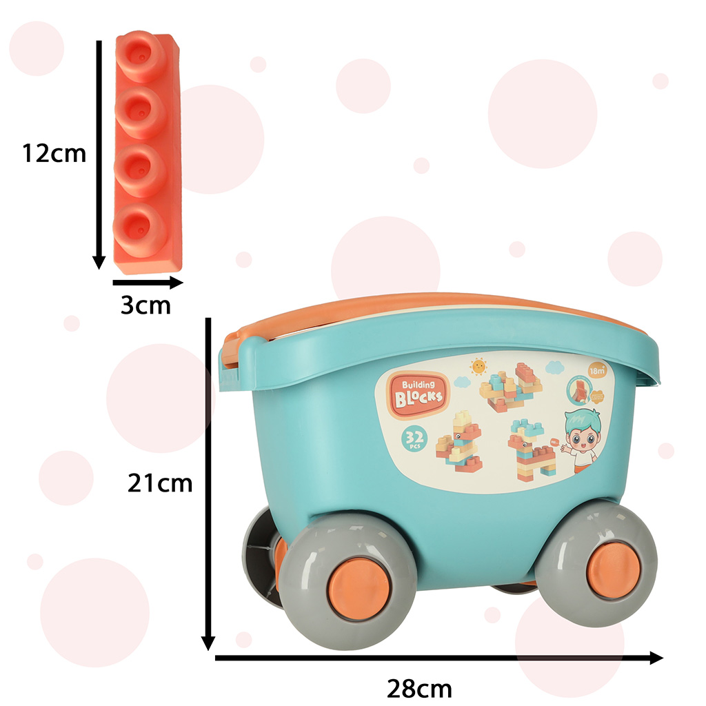 Barevné vzdělávací bloky jsou zabaleny v praktickém kontejneru na kolečkách, díky kterému bude přesun oblíbených bloků vašeho dítěte z místa na místo mnohem jednodušší.
