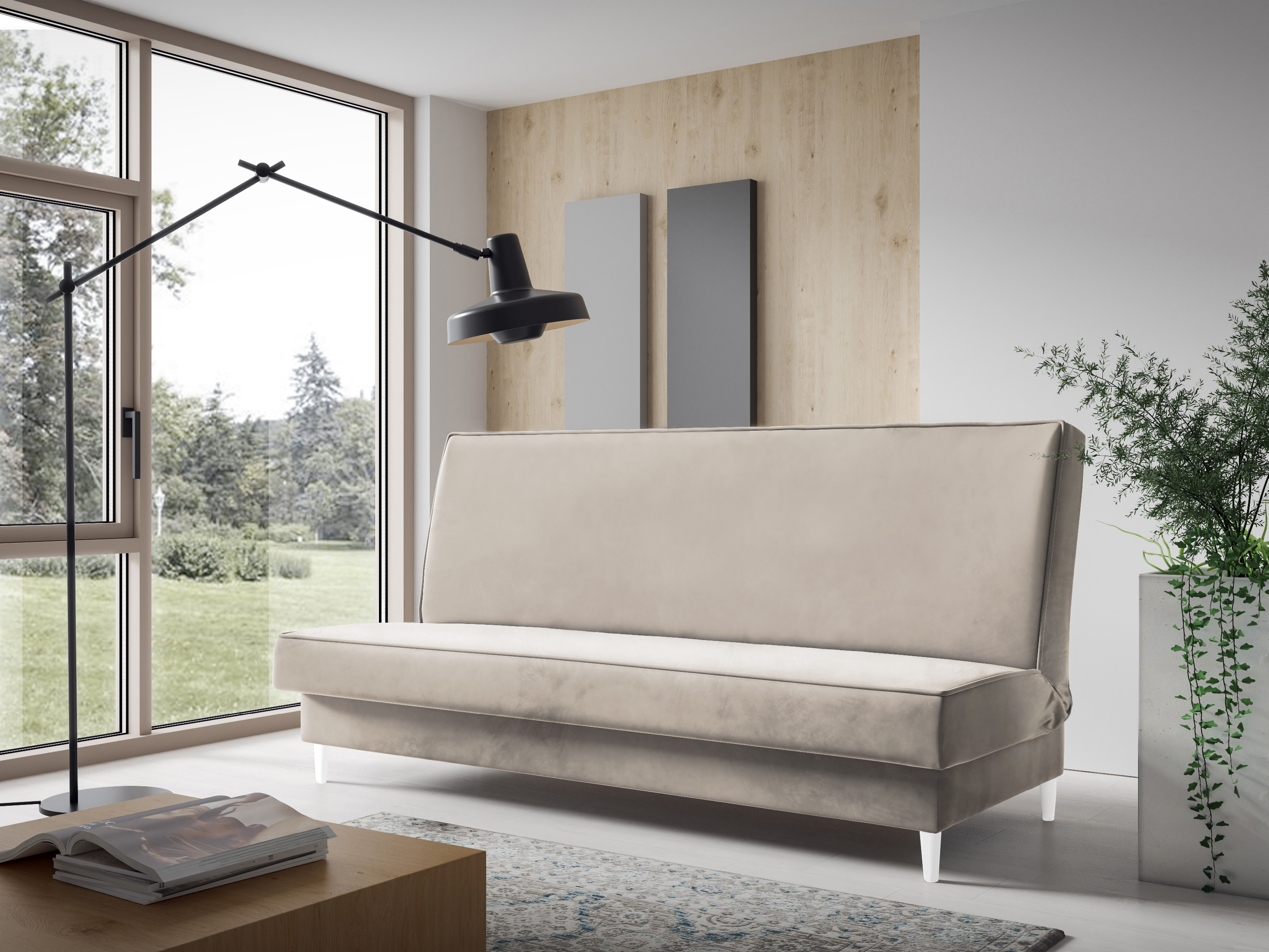 Korpus pohovky, soustružené dřevěné nožky, spojovací materiál a montážní návod.