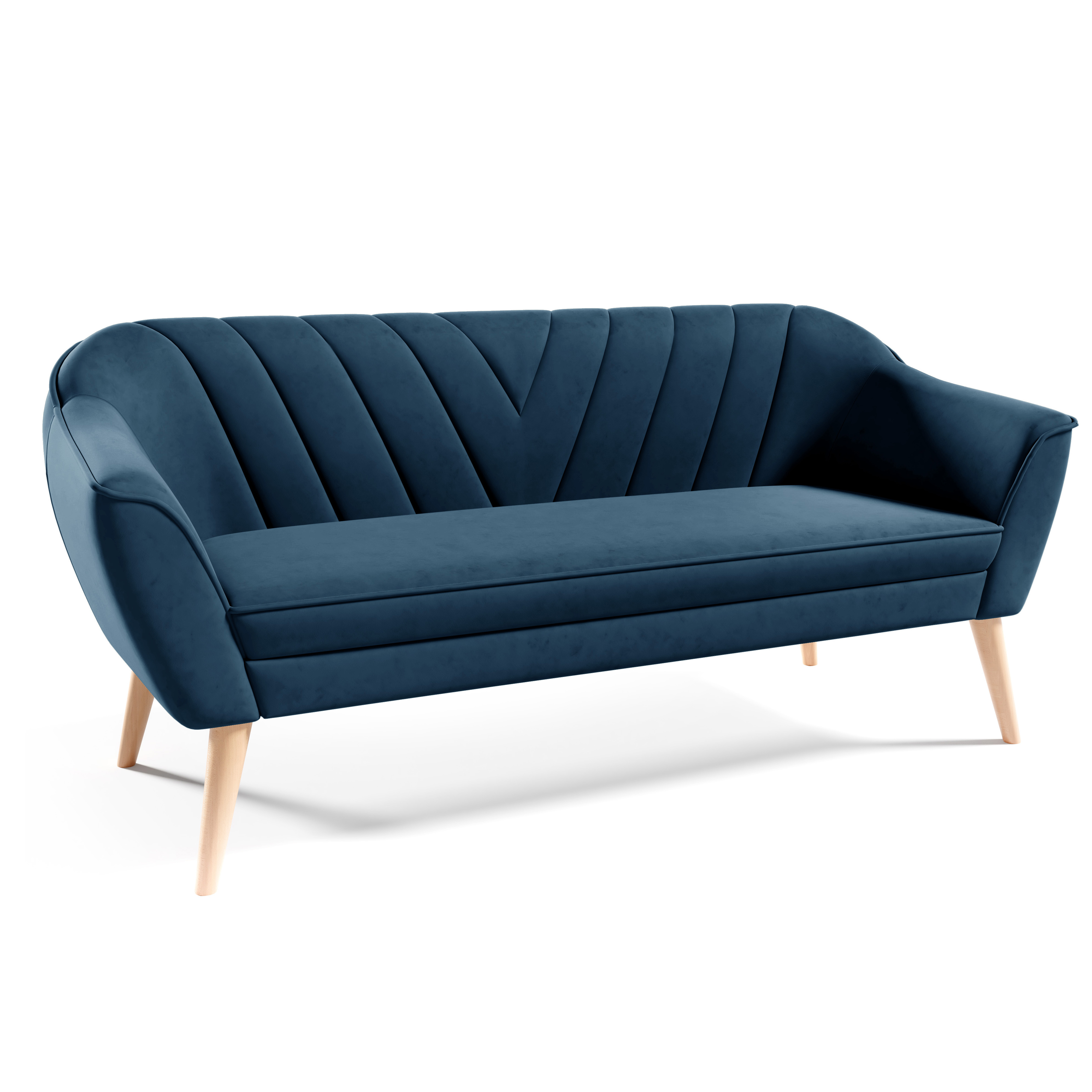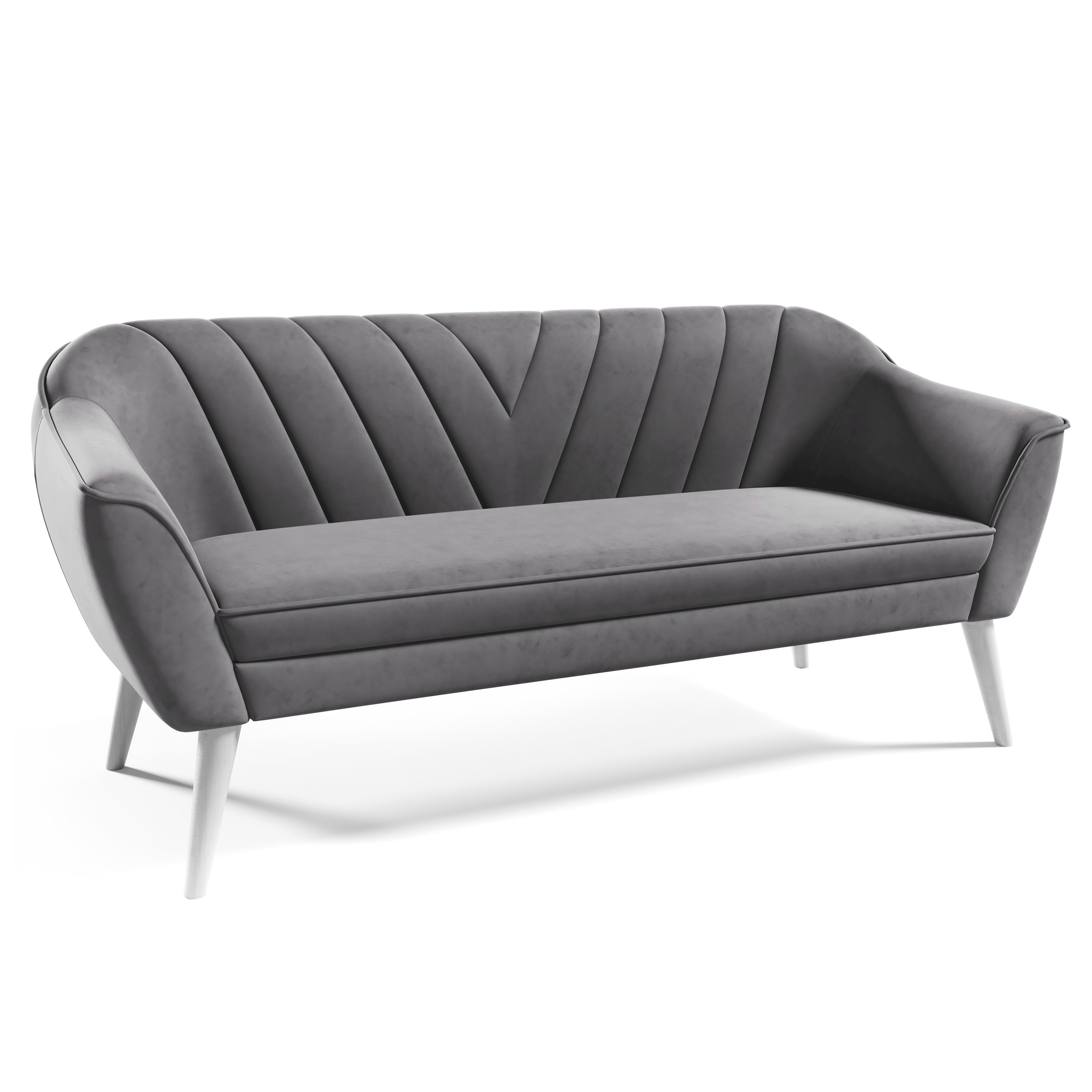 Korpus pohovky, soustružené dřevěné nožky, spojovací materiál a montážní návod.