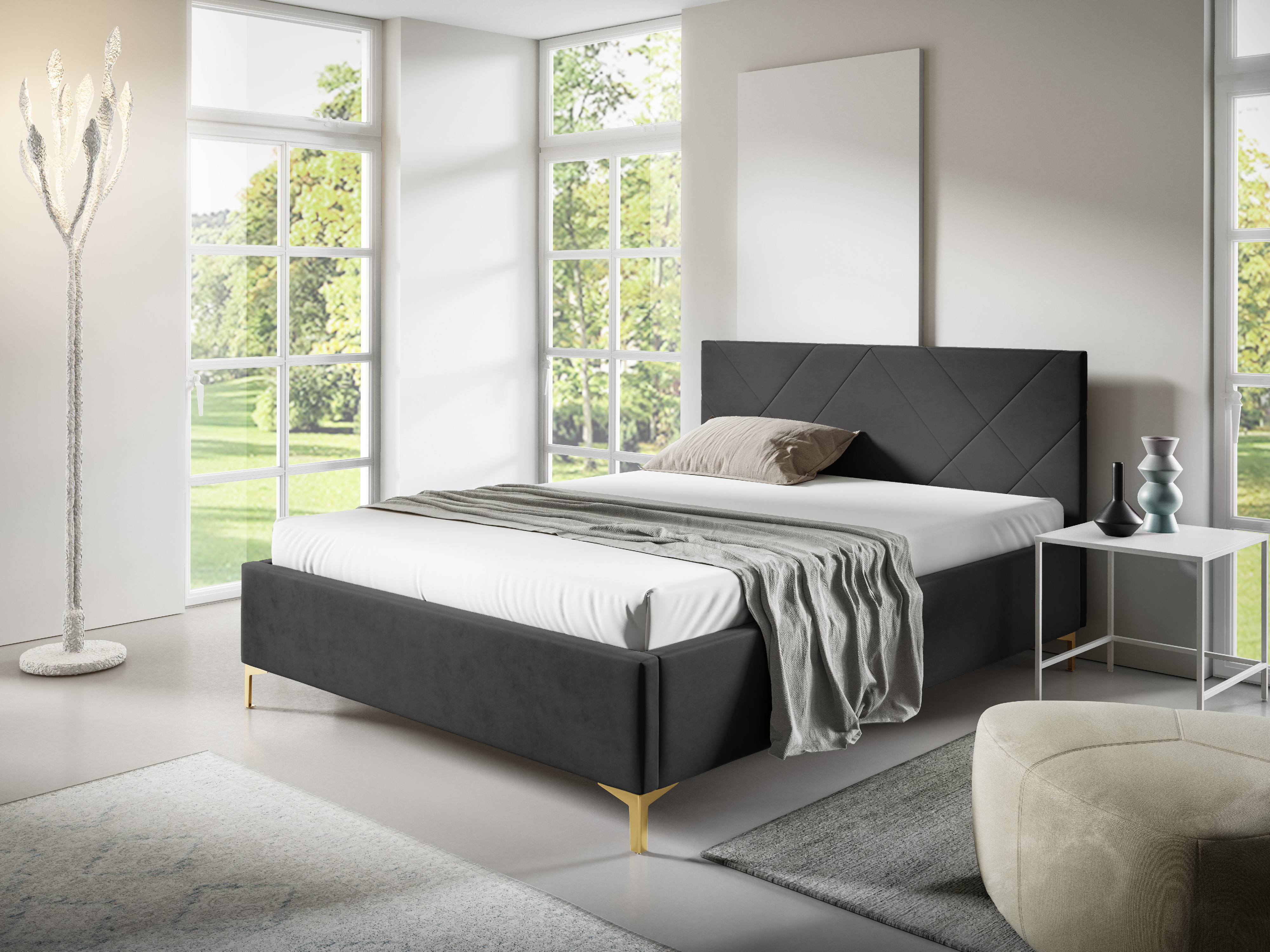 Eka Čalouněná postel SARAH+ 140x200 cm Barva látky Trinity: (2331) Tmavá modrá, Úložný prostor: S kovovým rámem úložného prostoru