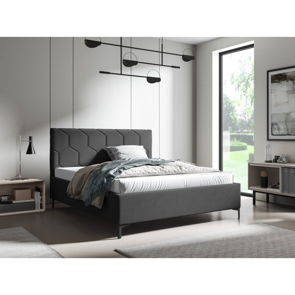 Čalouněné postele se vyznačují pohodlným a měkkým čalouněným čelem a bočními stranami. Tyto postele jsou obvykle vyrobeny z pevného rámu a jsou opatřeny pevnými rošty. Výplň čela a bočních stran postele bývá vyrobena z měkkých materiálů, jako je tkanina nebo kůže, a může být doladěna různými detaily, jako jsou zdobené knoflíky, aplikace nebo švy. Tyto postele mohou být dodávány v různých velikostech, barvách a stylech, což jim umožňuje být umístěny do různých typů interiérů, od moderního po tradiční. Navíc čalouněné postele nabízejí dostatek prostoru pro uskladnění, jako jsou úložné prostory pod matraci.