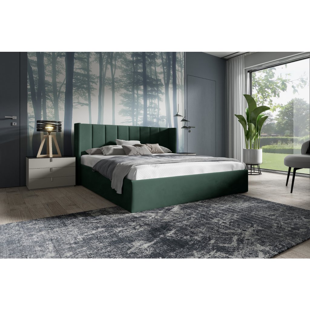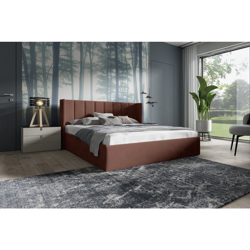 Čalouněné postele se vyznačují pohodlným a měkkým čalouněným čelem a bočními stranami. Tyto postele jsou obvykle vyrobeny z pevného rámu a jsou opatřeny pevnými rošty. Výplň čela a bočních stran postele bývá vyrobena z měkkých materiálů, jako je tkanina nebo kůže, a může být doladěna různými detaily, jako jsou zdobené knoflíky, aplikace nebo švy. Tyto postele mohou být dodávány v různých velikostech, barvách a stylech, což jim umožňuje být umístěny do různých typů interiérů, od moderního po tradiční. Navíc čalouněné postele nabízejí dostatek prostoru pro uskladnění, jako jsou úložné prostory pod matraci.