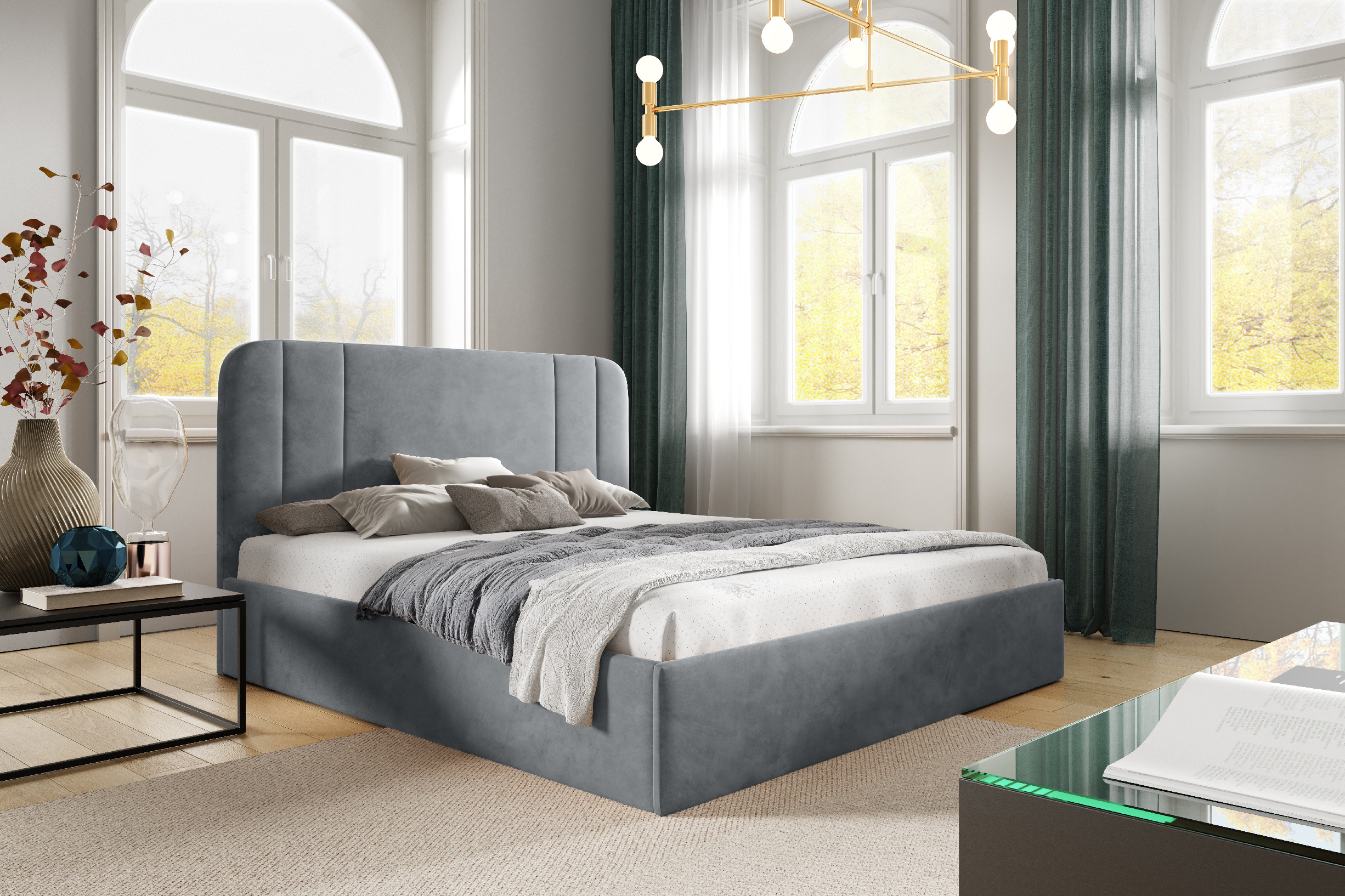 Čalouněné postele se vyznačují pohodlným a měkkým čalouněným čelem a bočními stranami. Tyto postele jsou obvykle vyrobeny z pevného rámu a jsou opatřeny pevnými rošty. Výplň čela a bočních stran postele bývá vyrobena z měkkých materiálů, jako je tkanina nebo kůže, a může být doladěna různými detaily, jako jsou zdobené knoflíky, aplikace nebo švy. Tyto postele mohou být dodávány v různých velikostech, barvách a stylech, což jim umožňuje být umístěny do různých typů interiérů, od moderního po tradiční. Navíc čalouněné postele nabízejí dostatek prostoru pro uskladnění, jako jsou úložné prostory pod matraci.