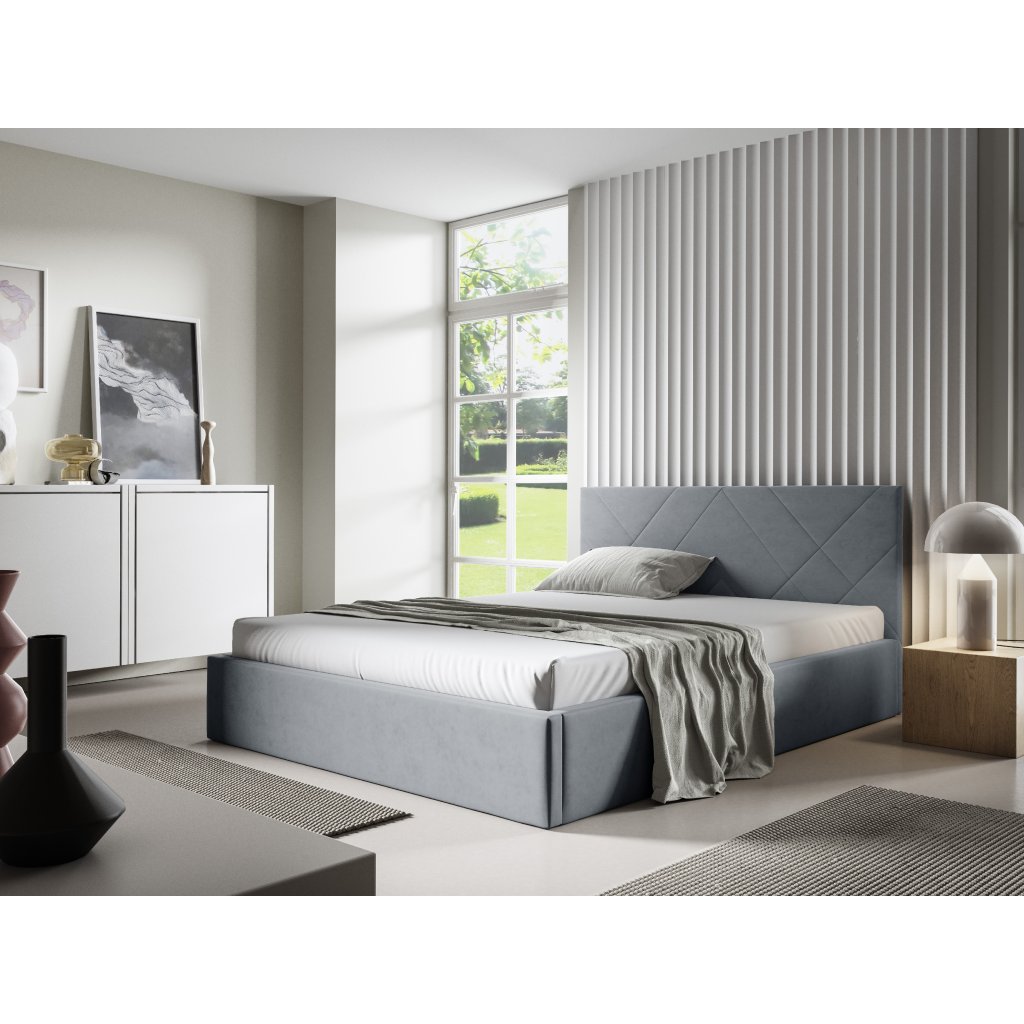 Čalouněné postele se vyznačují pohodlným a měkkým čalouněným čelem a bočními stranami. Tyto postele jsou obvykle vyrobeny z pevného rámu a jsou opatřeny pevnými rošty. Výplň čela a bočních stran postele bývá vyrobena z měkkých materiálů, jako je tkanina nebo kůže, a může být doladěna různými detaily, jako jsou zdobené knoflíky, aplikace nebo švy. Tyto postele mohou být dodávány v různých velikostech, barvách a stylech, což jim umožňuje být umístěny do různých typů interiérů, od moderního po tradiční. Navíc čalouněné postele nabízejí dostatek prostoru pro uskladnění, jako jsou úložné prostory pod matraci.