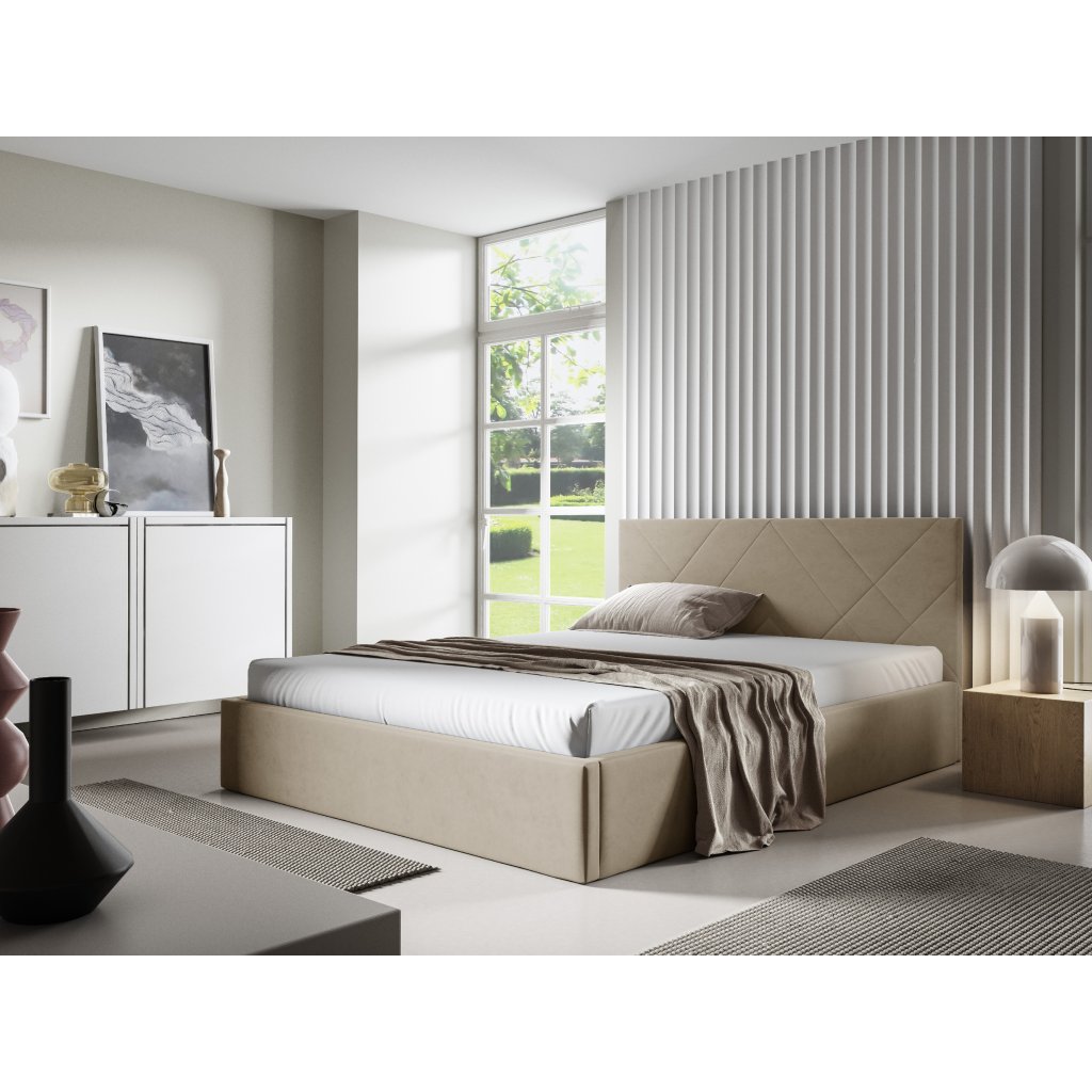 Eka Čalouněná postel SARAH 180x200 cm Barva látky Trinity: (2301) Krémová bíla, Úložný prostor: Bez úložného prostoru