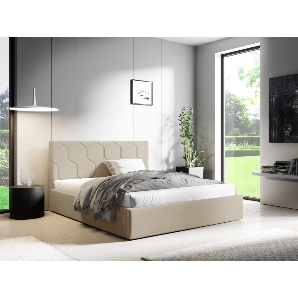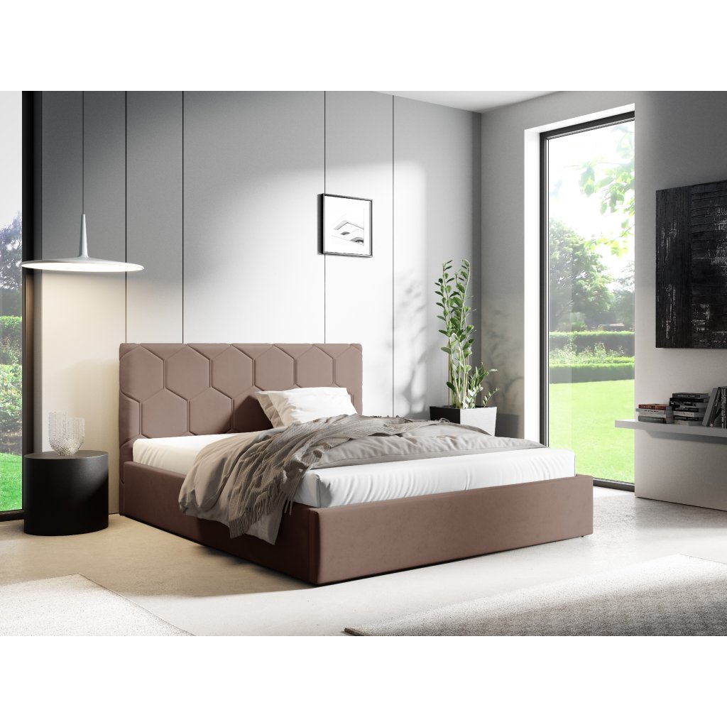 Čalouněné postele se vyznačují pohodlným a měkkým čalouněným čelem a bočními stranami. Tyto postele jsou obvykle vyrobeny z pevného rámu a jsou opatřeny pevnými rošty. Výplň čela a bočních stran postele bývá vyrobena z měkkých materiálů, jako je tkanina nebo kůže, a může být doladěna různými detaily, jako jsou zdobené knoflíky, aplikace nebo švy. Tyto postele mohou být dodávány v různých velikostech, barvách a stylech, což jim umožňuje být umístěny do různých typů interiérů, od moderního po tradiční. Navíc čalouněné postele nabízejí dostatek prostoru pro uskladnění, jako jsou úložné prostory pod matraci.