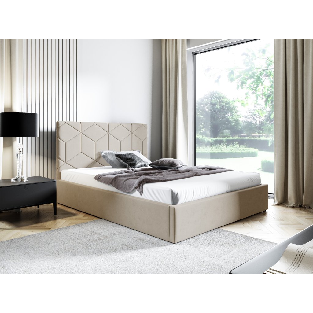 Eka Čalouněná postel BOX 160x200 cm Barva látky Trinity: (2301) Krémová bíla, Úložný prostor: Bez úložného prostoru