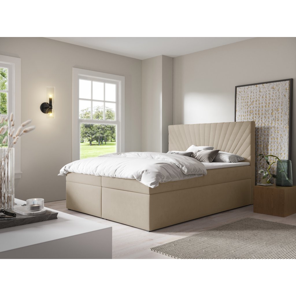 Kontinentální postel AFRODITE s čalouněním nabízí skvělý komfort pro spaní a odpočinek. Je vybavena vysokou a stabilní základnou s integrovaným úložným prostorem, který nabízí místo pro uložení věcí. Postel je vybavena prvotřídní taštičkovou matrací a polstrováním pro pohodlné ulehnutí. Na vrchní části matrace je umístěn pěnový polštář - topper, který dodává další vrstvu pohodlí. Se svou výškou 60 cm postel nabízí neuvěřitelné pohodlí při vstávání.