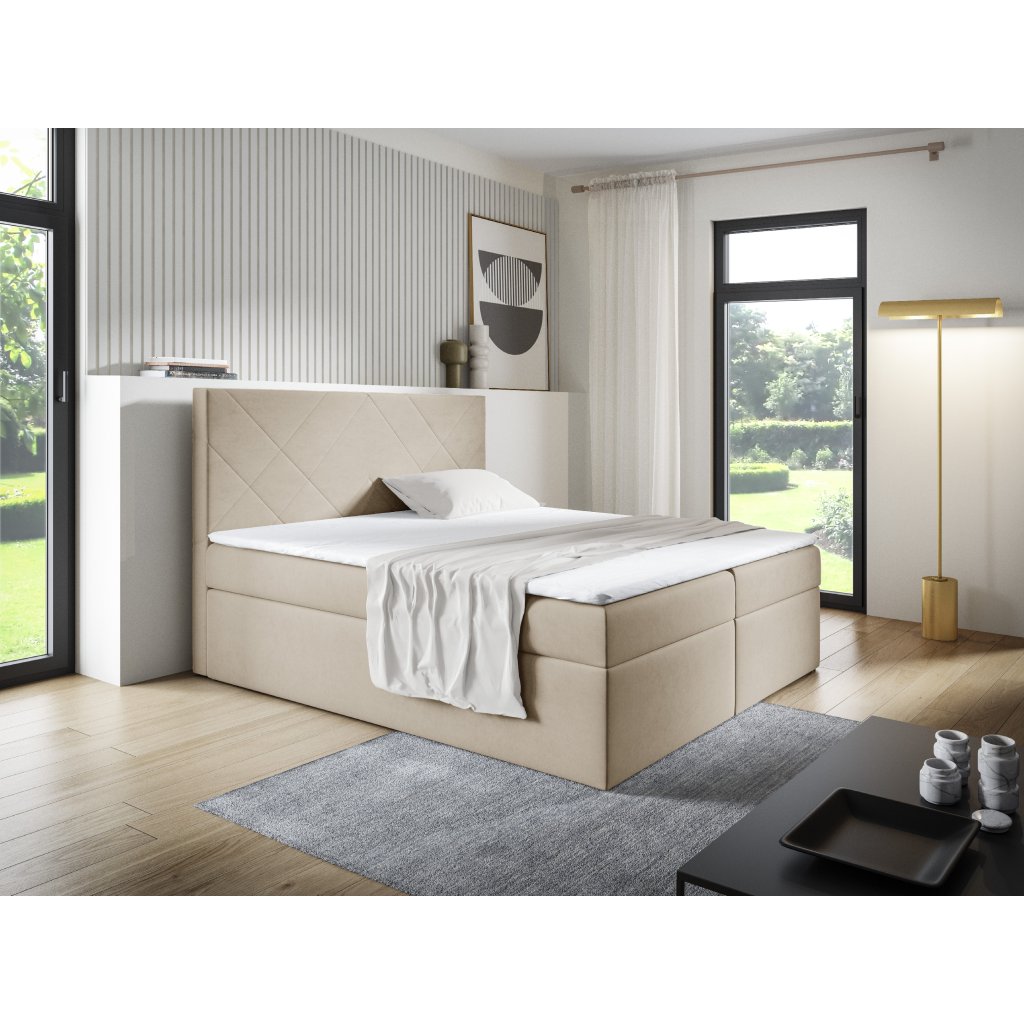 Kontinentální postel SARAH s čalouněním nabízí skvělý komfort pro spaní a odpočinek. Je vybavena vysokou a stabilní základnou s integrovaným úložným prostorem, který nabízí místo pro uložení věcí. Postel je vybavena prvotřídní taštičkovou matrací a polstrováním pro pohodlné ulehnutí. Na vrchní části matrace je umístěn pěnový polštář - topper, který dodává další vrstvu pohodlí. Se svou výškou 60 cm postel nabízí neuvěřitelné pohodlí při vstávání.