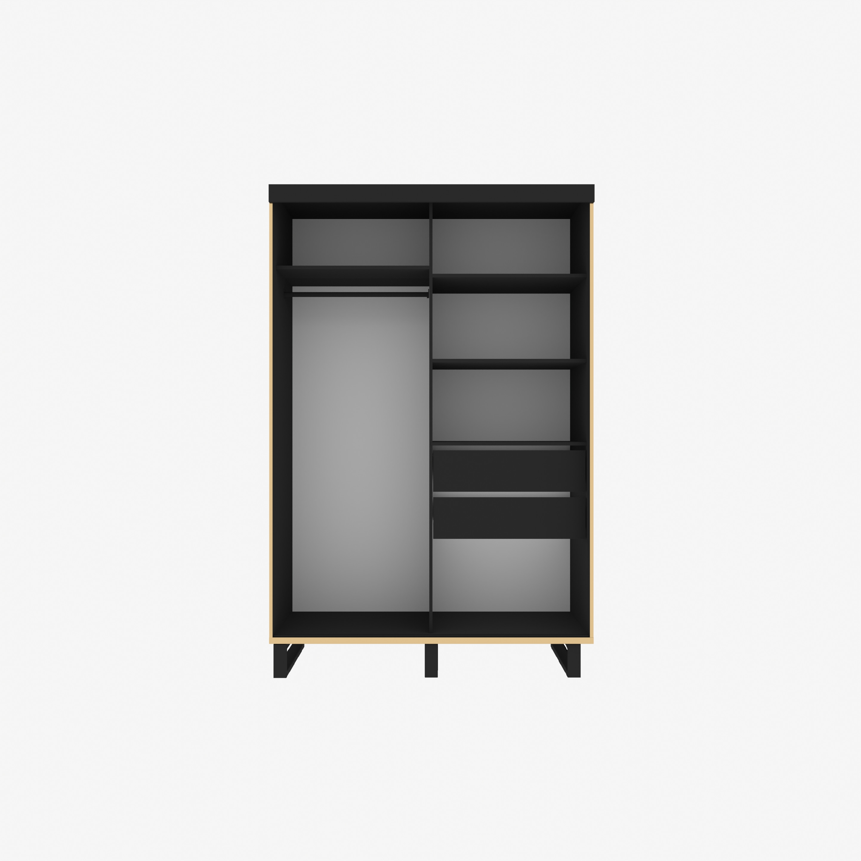Představte si nejen moderní, ale také funkční kus nábytku, který se stane středobodem Vaší ložnice nebo předsíně - moderní šatní skříň GOD. Tento kousek nábytku je dokonalým spojením moderních prvků v dekoru Černá se zlatými prvky s vysokými bytelnými kovovými nohami v černé barvě.