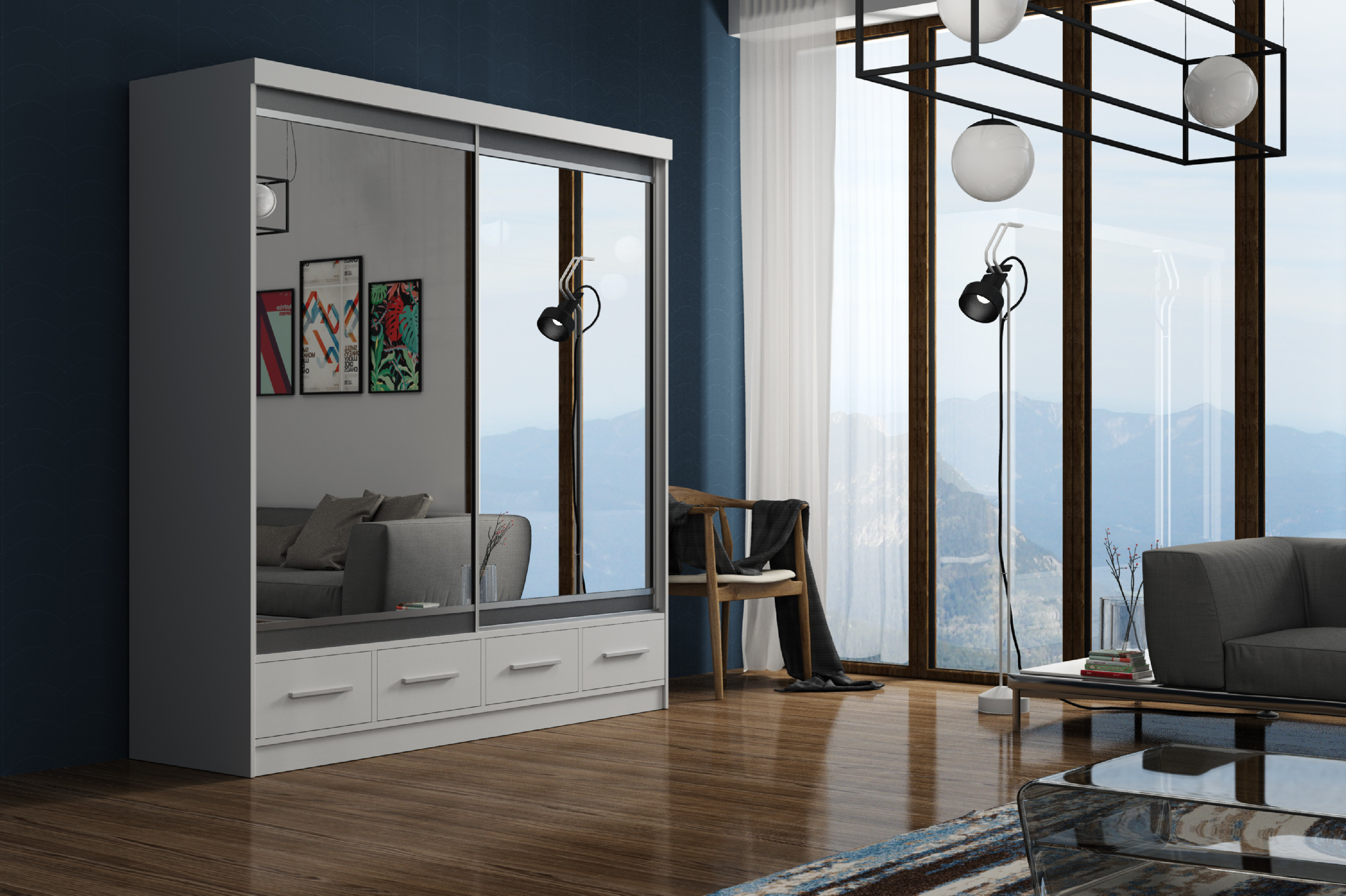 Hledáte-li spojení mezi elegantním designem a praktičností, tato šatní skříň je tím pravým řešením. Díky svému zajímavému designu se stane vynikajícím doplňkem každého interiéru. Tato skříň je rozdělena do dvou sekcí, které nabízejí dostatek prostoru pro pro Vaše oblečení a další osobní věci, zatímco vestavěné zrcadlo Vám umožní rychle zkontrolovat svůj vzhled před tím, než vyrazíte ven.