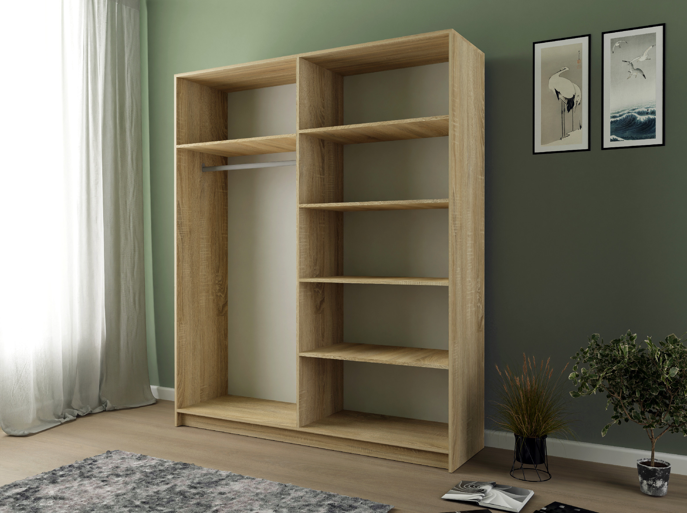 Skříň se dokonale hodí do různých místností, jako jsou ložnice, předsíň, kancelář, obývací pokoj, dětský nebo studentský pokoj. Možnosti využití jsou skutečně široké a nabízí možnost variabilního zařízení prostoru, pro lepší představu o uspořádání skříně si můžete prohlédnout doplňkové fotografie.