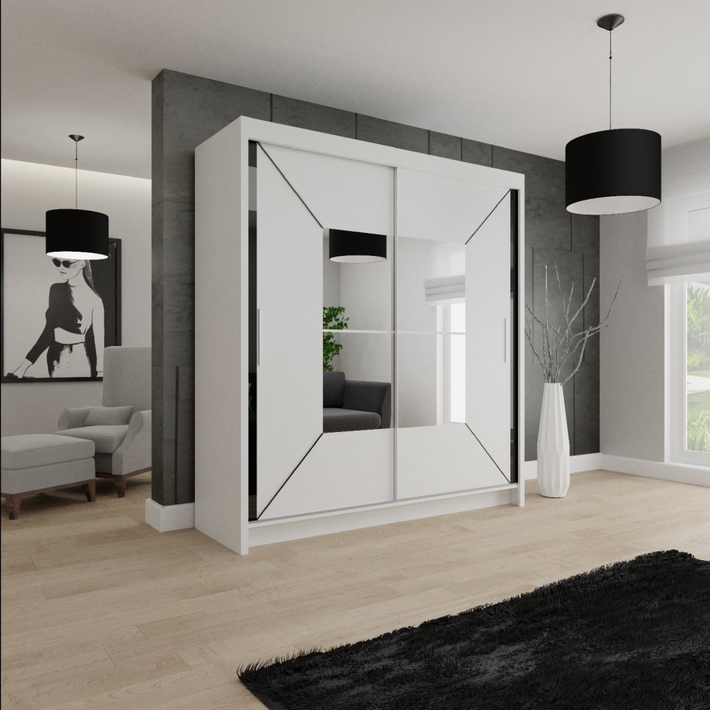 Hledáte-li spojení mezi elegantním designem a praktičností, tato šatní skříň je tím pravým řešením. Díky svému zajímavému designu se stane vynikajícím doplňkem každého interiéru. Tato skříň je rozdělena do dvou sekcí, které nabízejí dostatek prostoru pro pro Vaše oblečení a další osobní věci, zatímco vestavěné zrcadlo Vám umožní rychle zkontrolovat svůj vzhled před tím, než vyrazíte ven.