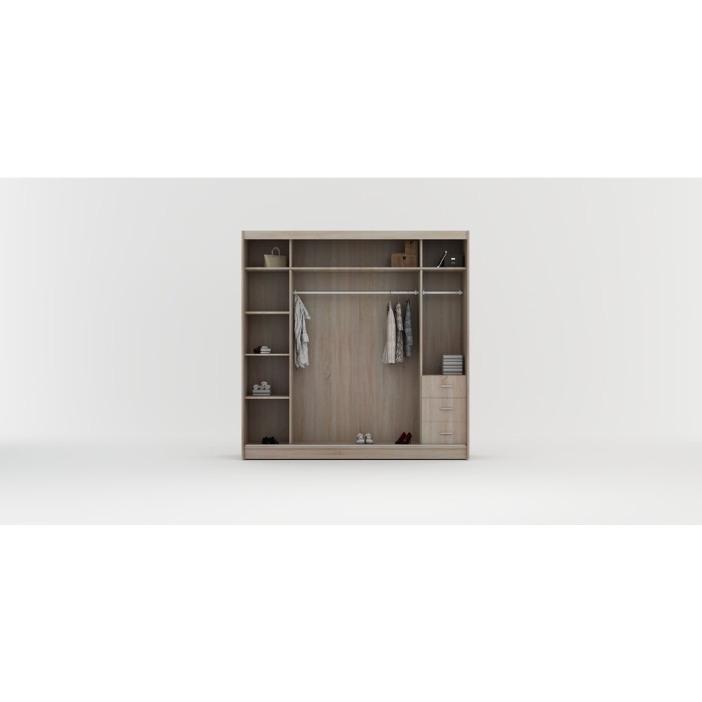 Šatní skříň disponuje posuvným systém otevírání dveří. Tento systém nejenže zajišťuje plynulé a tiché otevírání dveří, ale také výrazně šetří prostor ve srovnání s tradičními otevíracími mechanismy.