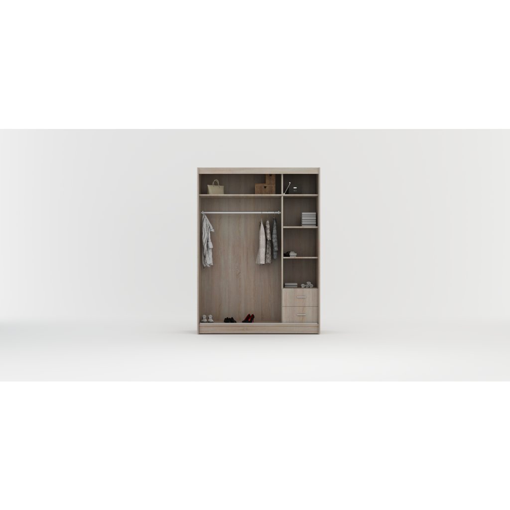 Hledáte-li spojení mezi elegantním designem a praktičností, tato šatní skříň je tím pravým řešením. Díky svému zajímavému designu se stane vynikajícím doplňkem každého interiéru. Tato skříň je rozdělena do dvou sekcí, které nabízejí dostatek prostoru pro pro Vaše oblečení a další osobní věci, zatímco vestavěné zrcadlo Vám umožní rychle zkontrolovat svůj vzhled před tím, než vyrazíte ven.