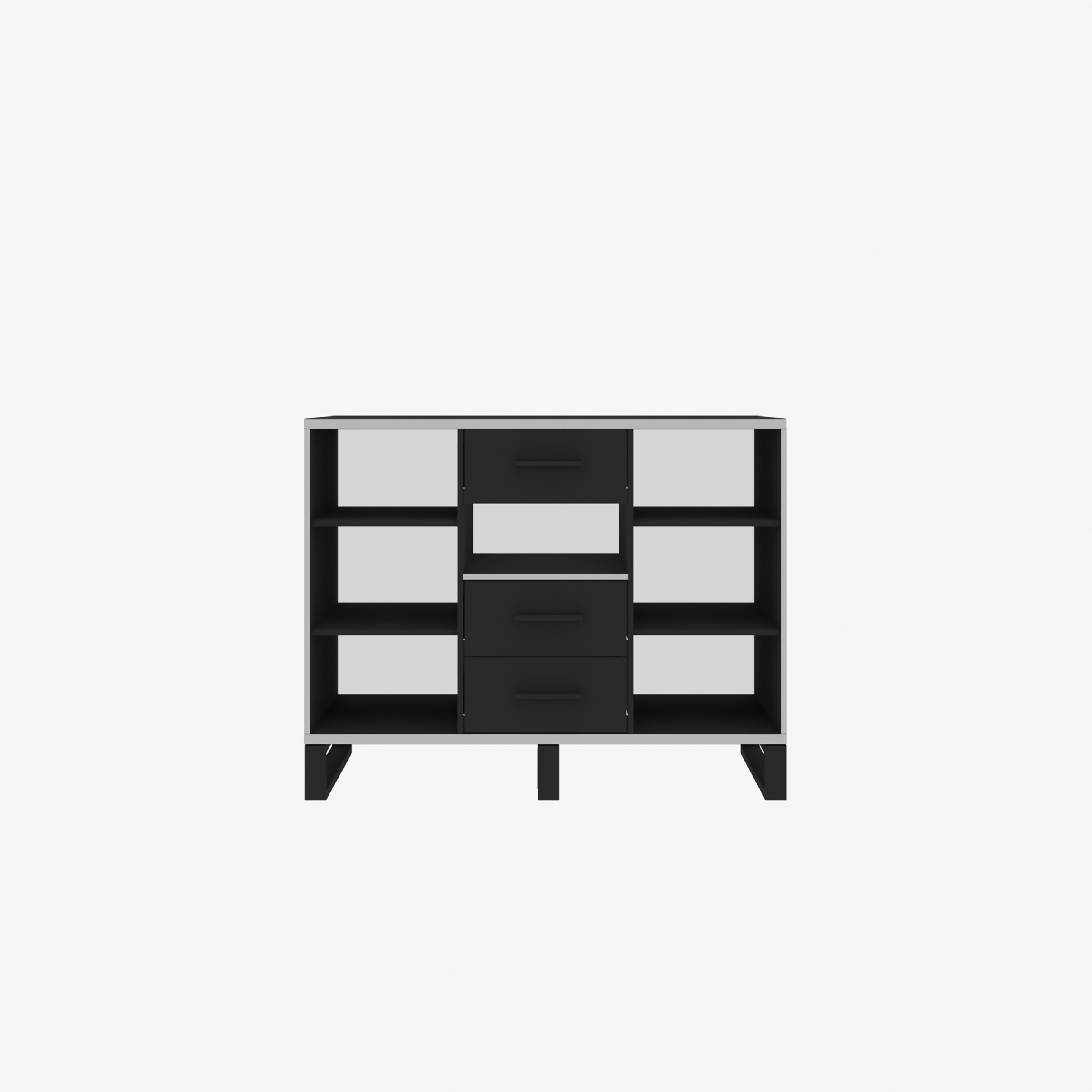 Každý kus nábytku z kolekce GOD je velice stabilní, jelikož je umístěn na vysokých kovových nohou v černé barvě. Korpus je vyroben z kvalitní laminované dřevotřísky o tloušťce 16 mm v dekoru Černá se střibrnými prvky.