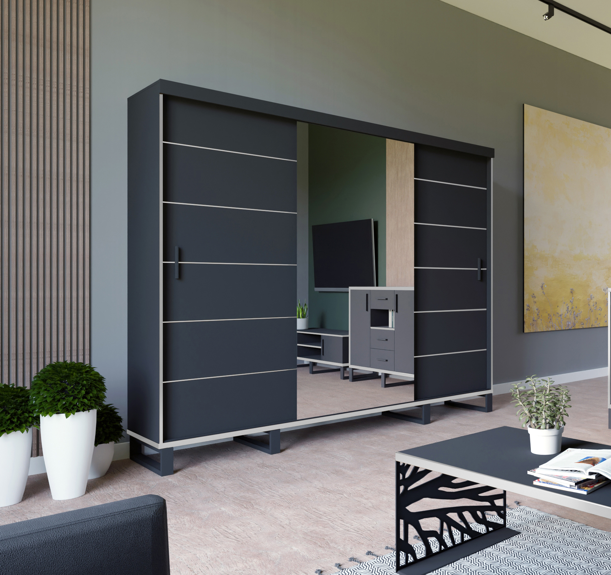 ARK Šatní skříň GOD, Černá/Stříbrná 250 cm
