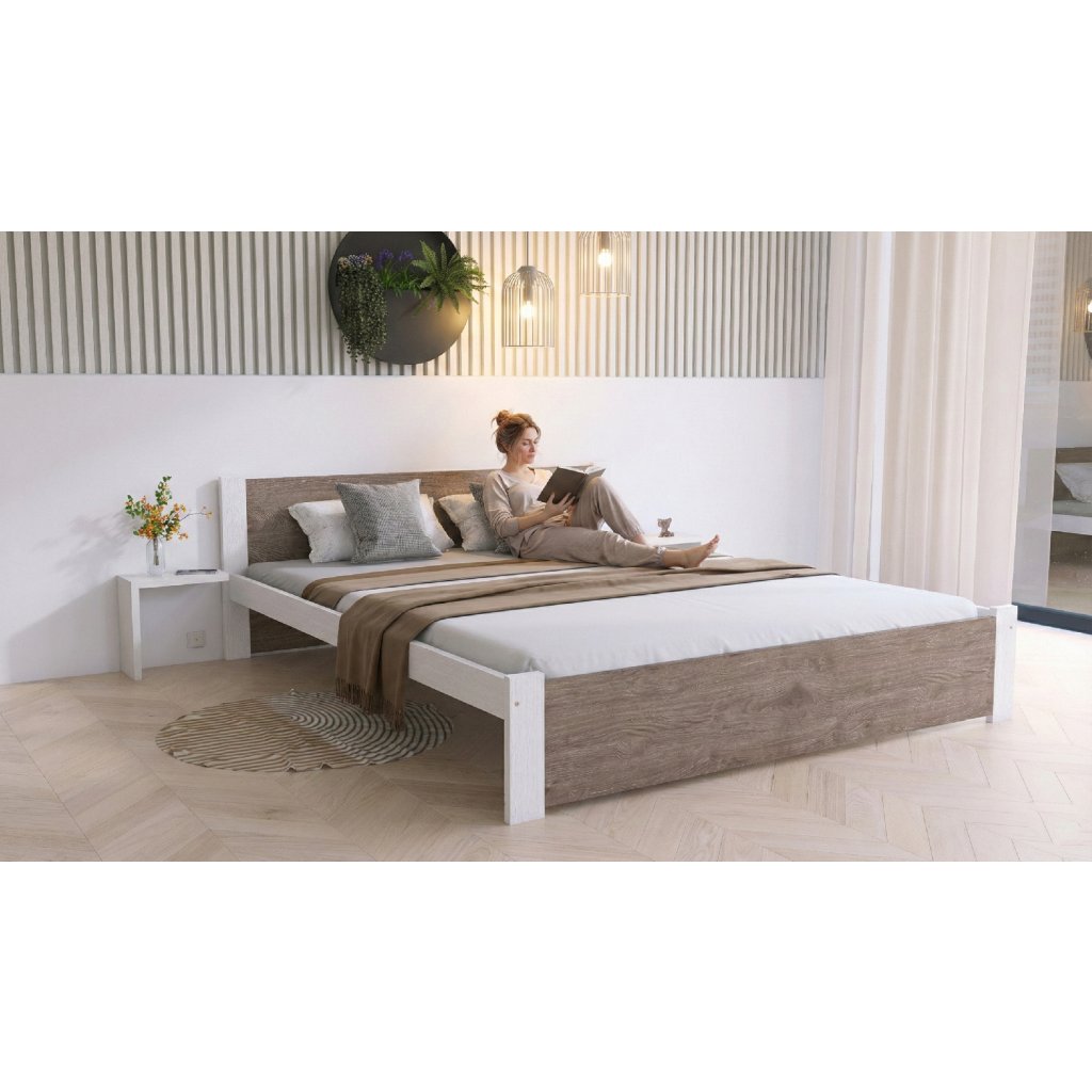 Maxi Postel z masivu Iris 120x200 cm, Bílá/DUB LANÝŽ