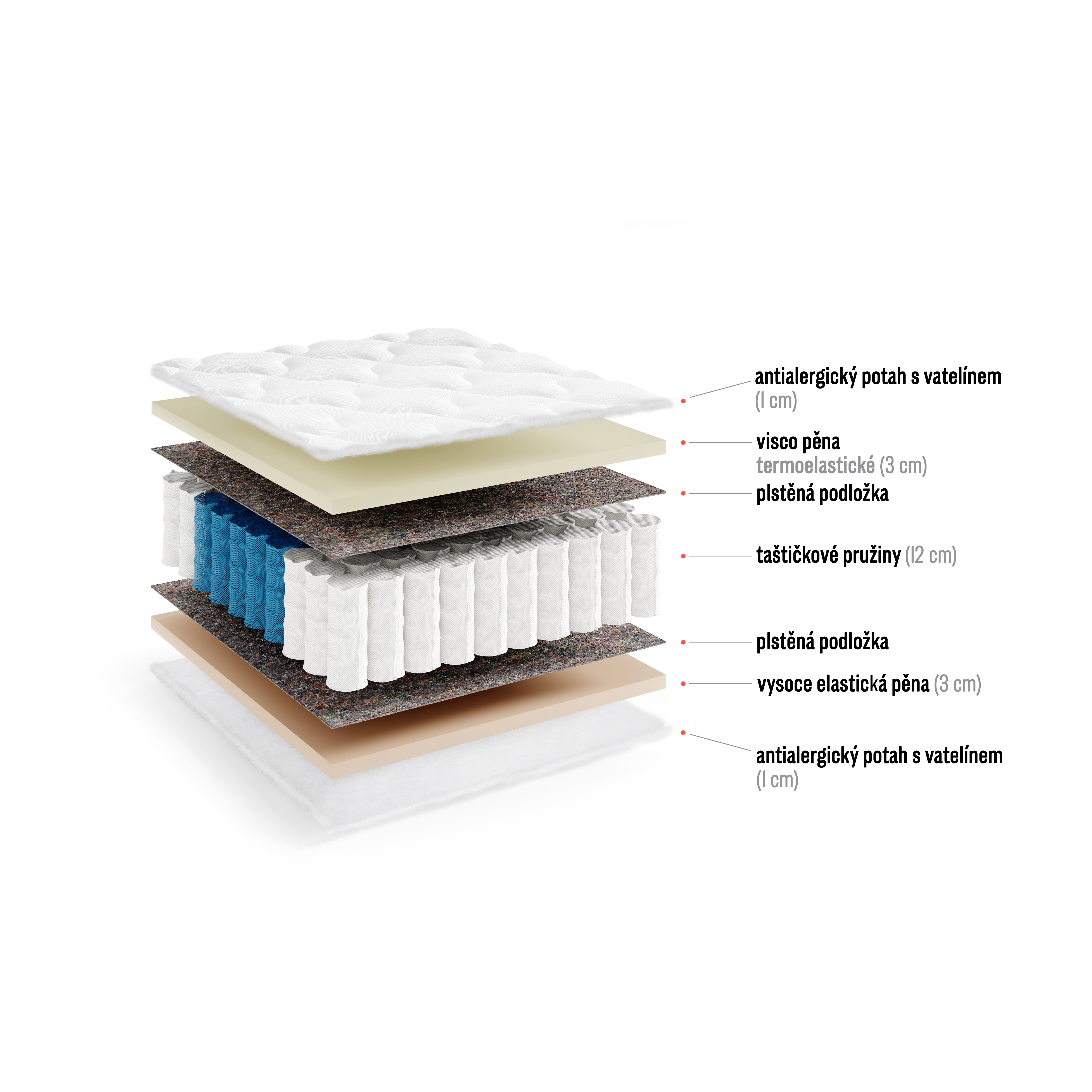 KAC Taštičková matrace s paměťovou pěnou VISCO a elastickou pěnou MERKURY 120x200 cm 20 cm