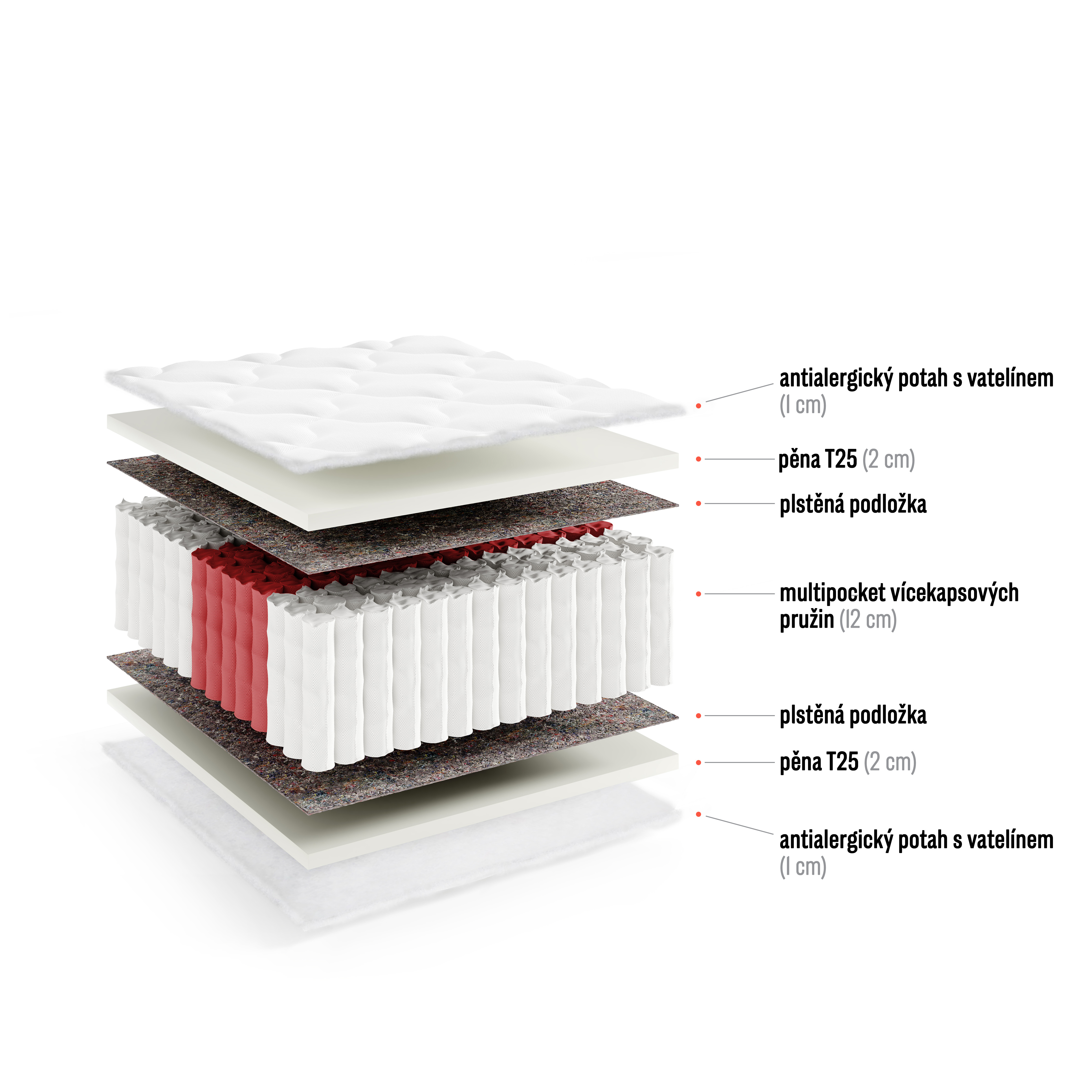 | Materiál | Vícekapsové pružiny |