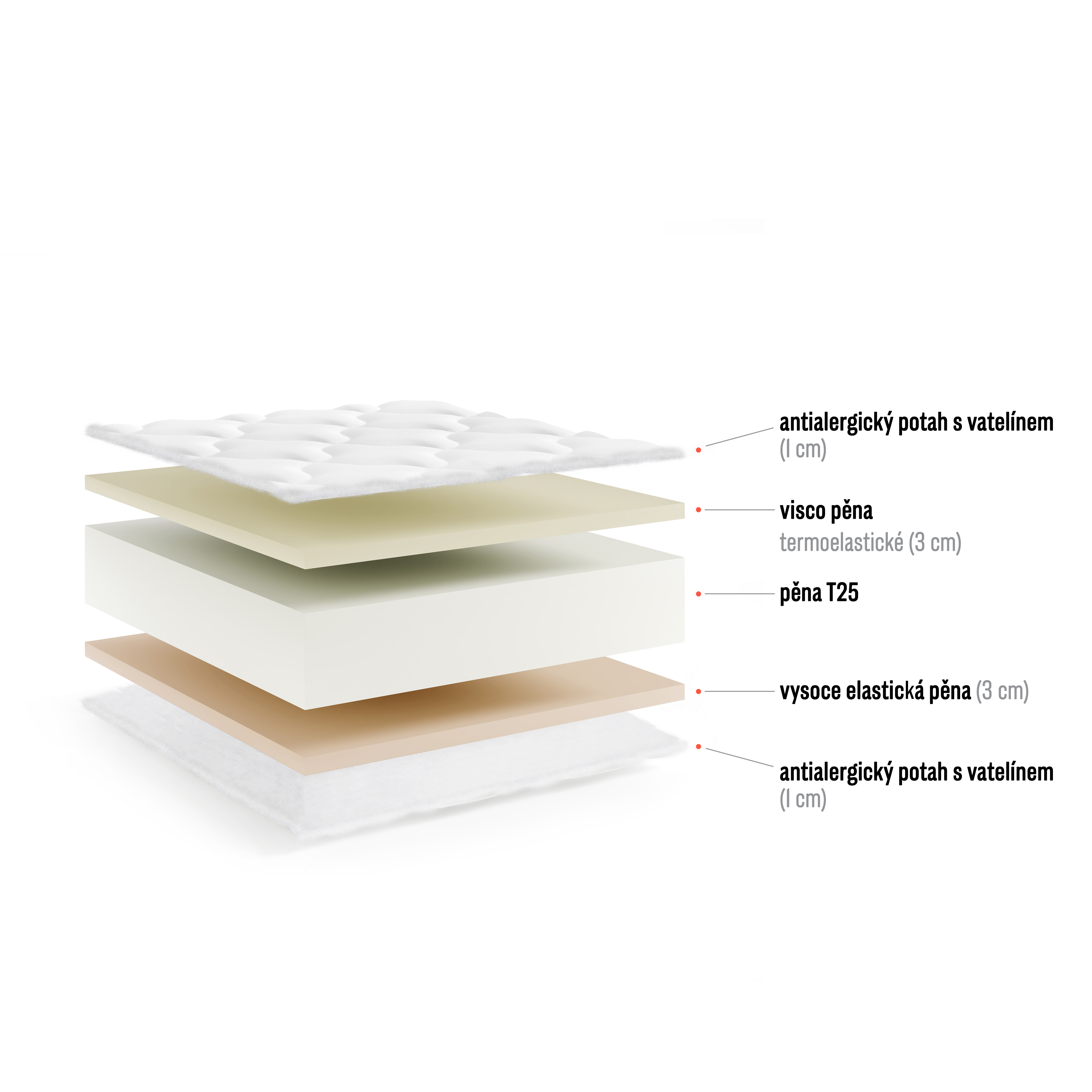 - Barevnost pěn se může lišit na základě výrobní šarže, barva nemá vliv na kvalitu matrace.