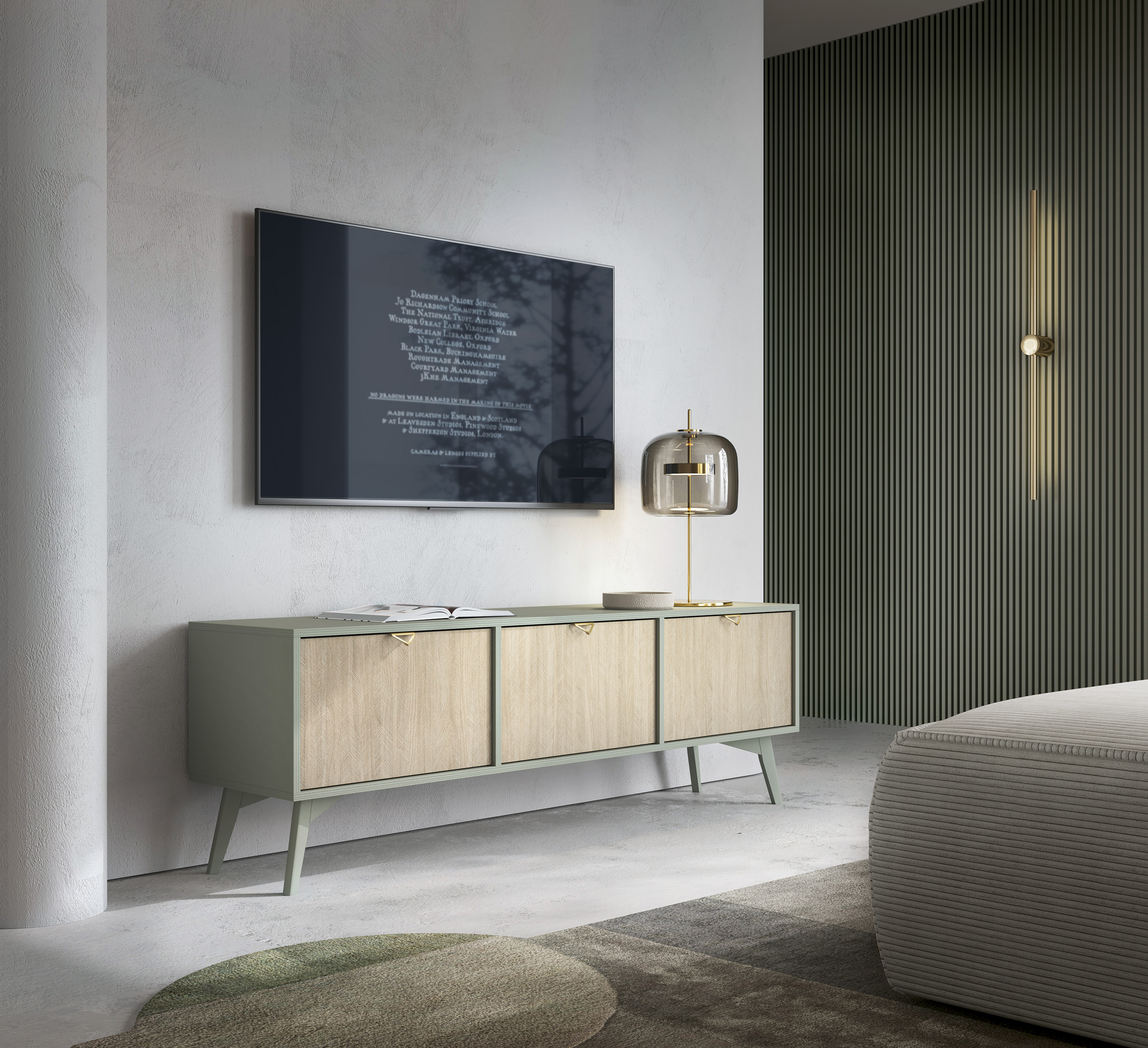 Televizní skříňka je součástí kolekce NATURAL, která ve svém systému obsahuje více druhů produktů, které můžete použít samostatně nebo je libovolně kombinovat i s jiným nábytkem z naší nabídky.