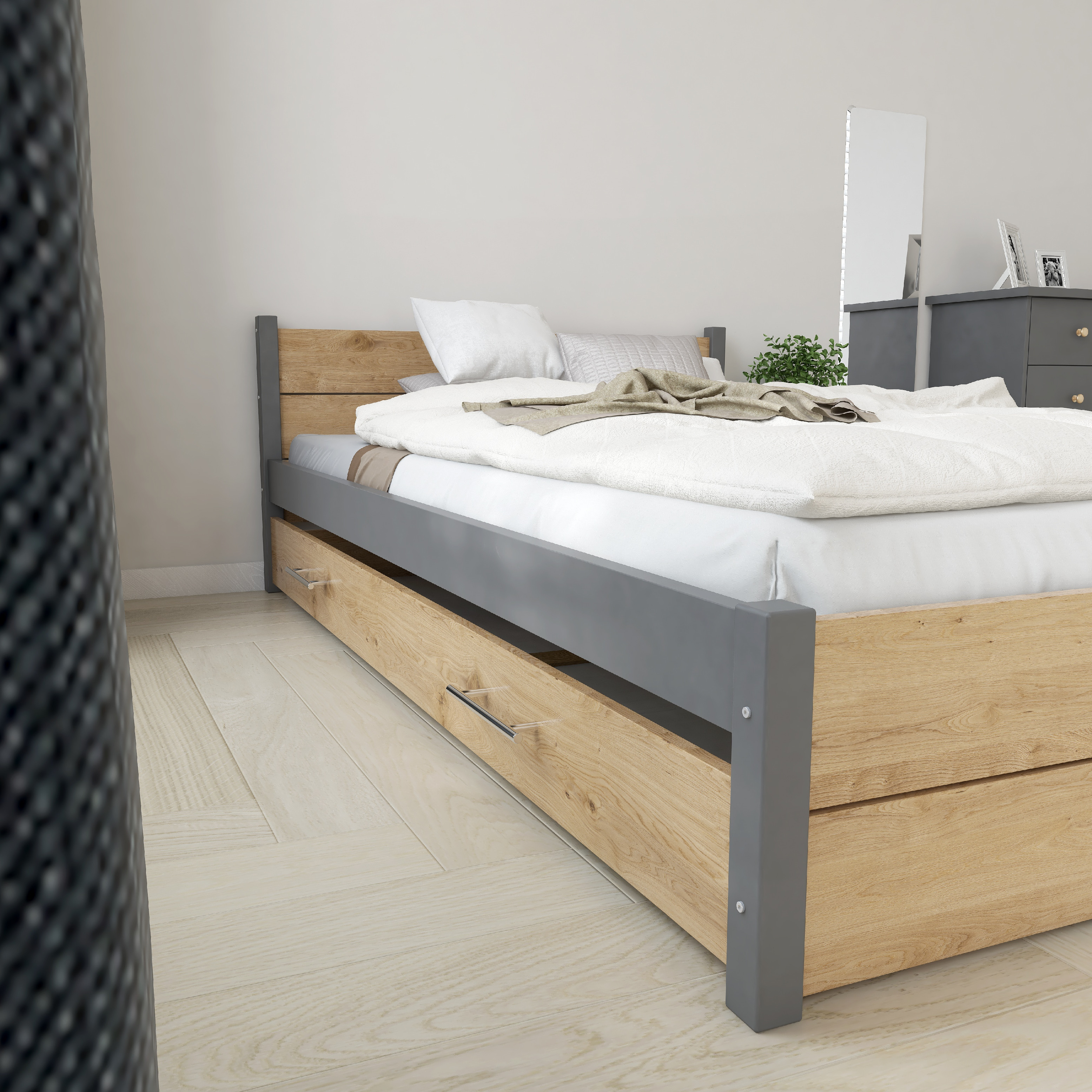 EB Postel z masivu Iris Double 120x200 cm, GRAFIT/Dub Artisan