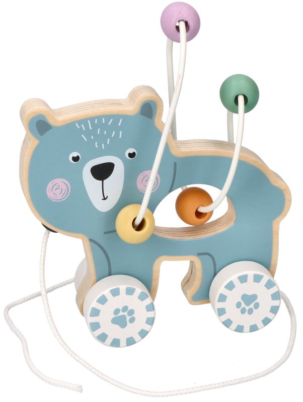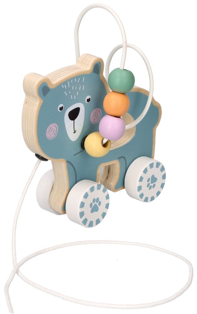 NEF Dřevěná dětská tahací hračka + motorické kuličky - Medvídek
