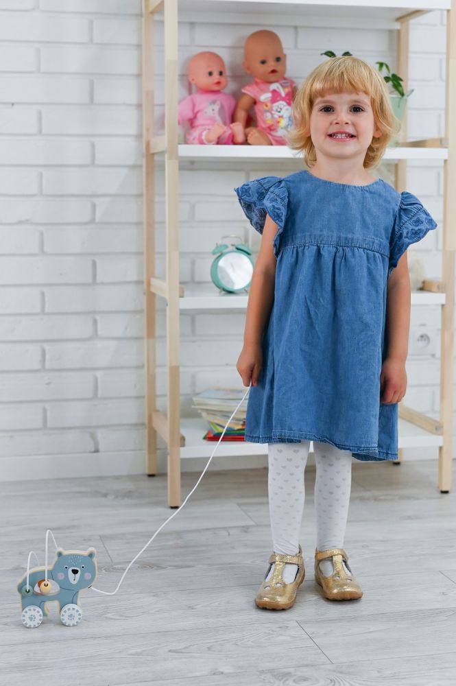 Dřevěný medvídek na provázku se jistě stane vaším oblíbeným společníkem na vašich prvních procházkách.