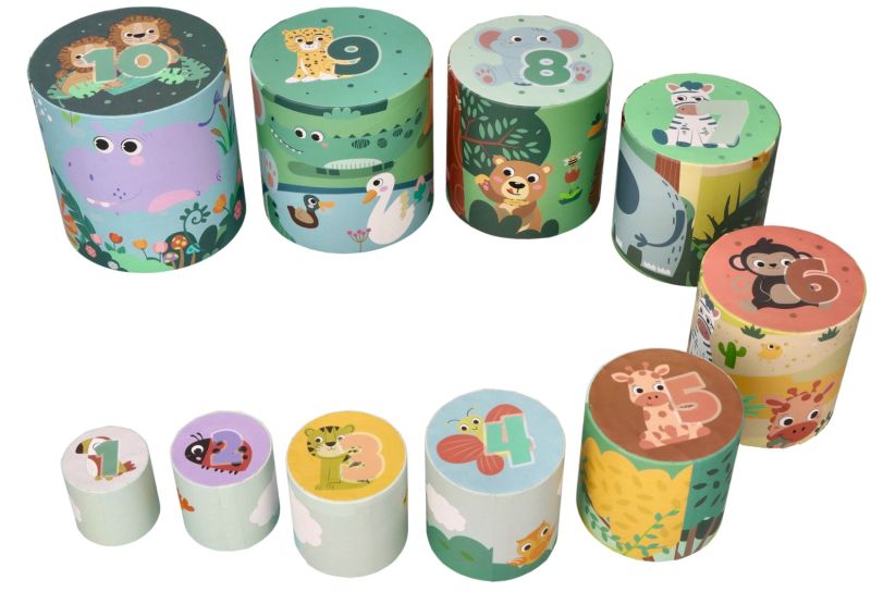 Sada se skládá z 10 kelímků s roztomilým vzorem safari zvířátek. Každý pohár je očíslován od 1 do 10.