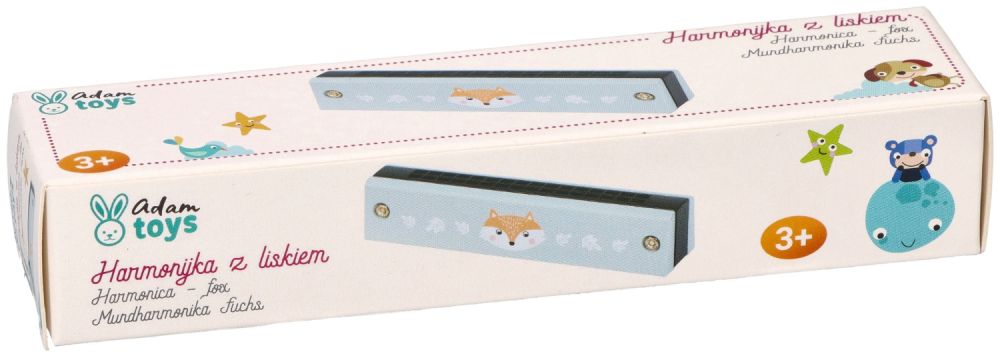 Krásná harmonika bude skvělým prvním nástrojem pro každého mladého milovníka hudby. Co na této hračce upoutá ze všeho nejvíce, je její vizuální stránka. Krásné barvy zdobené sladkým zajíčkem. Zajíček nám zdobí harmoniku, protože také rád poslouchá hudbu a ze zvuků, které hrajete, mu poskakují tlapky.