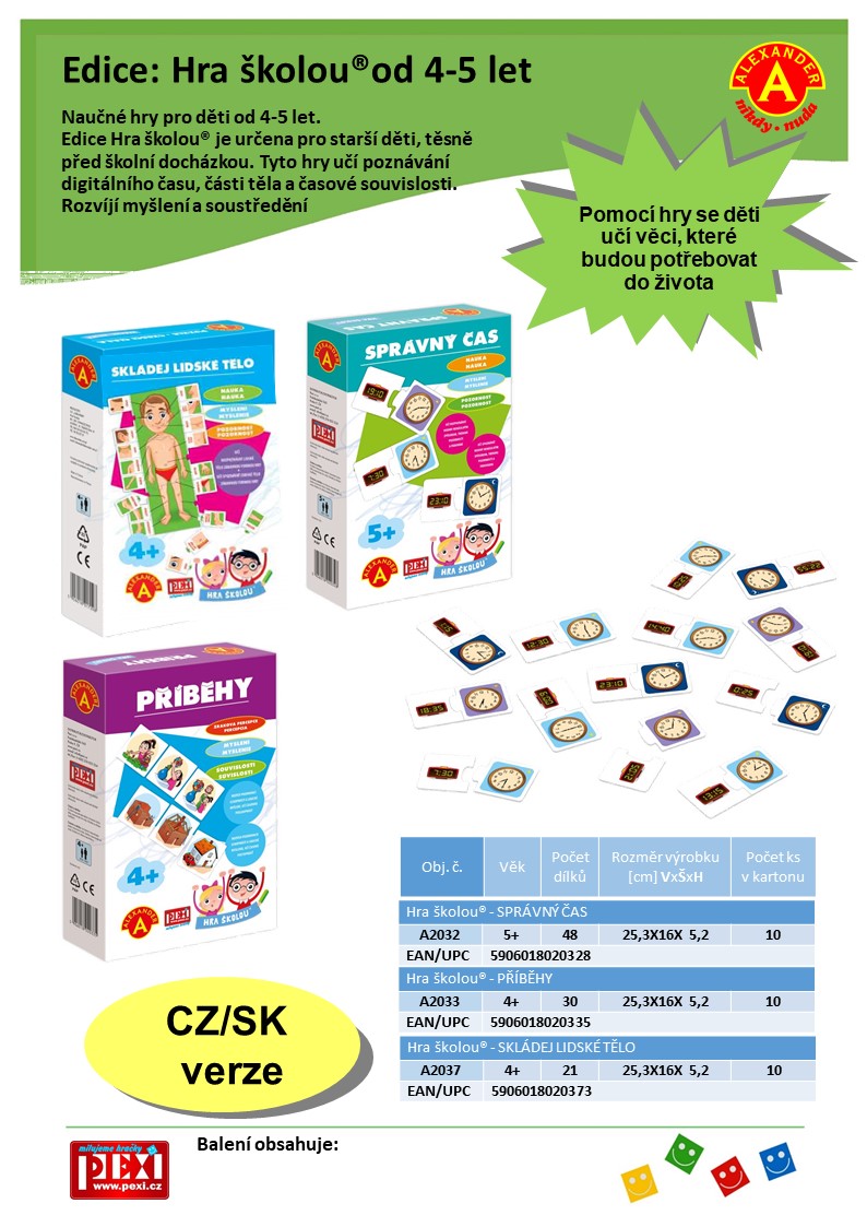 Hra je ze série naučných her pro malé objevitele "HRA ŠKOLOU®", která byla oceněná jako "Hračka roku 2018". Naučné hraní pro malé zvědavce od 4 let, pomocí níž se děti učí poznat časové posloupnosti v příbězích, logicky uvažovat a zdokonalují schopnost mluvit a popisovat. Hra rozvíjí pozorovací schopnosti, trénuje postřeh a zdokonaluje řeč. Úkolem je složit destičky s příběhy, tak aby na sebe postupně navazovaly a vznikl celý logický příběh ve správné časové posloupnosti. Při skládání příběhů, si děti povídají s rodiči a popisují to, co vidí na obrázcích. To je vede k rozšiřování slovní zásoby a zlepšení vyjadřování a také, za pomoci rodičů ke zlepšení výslovnosti.