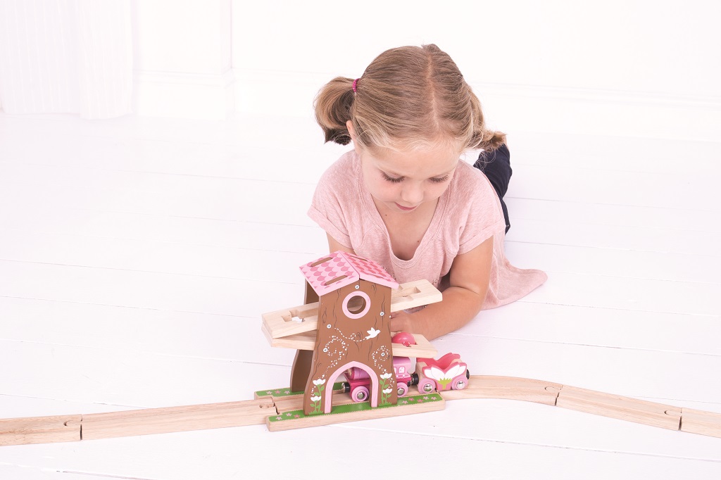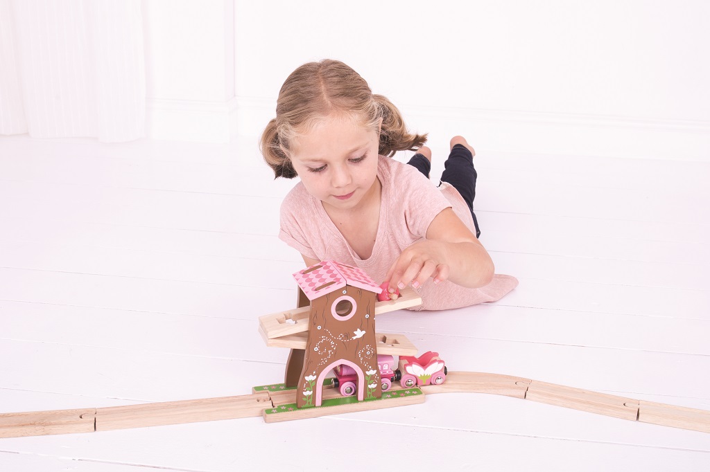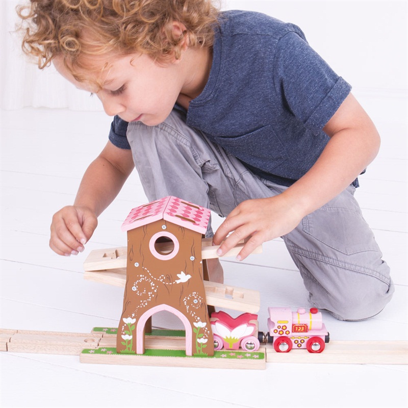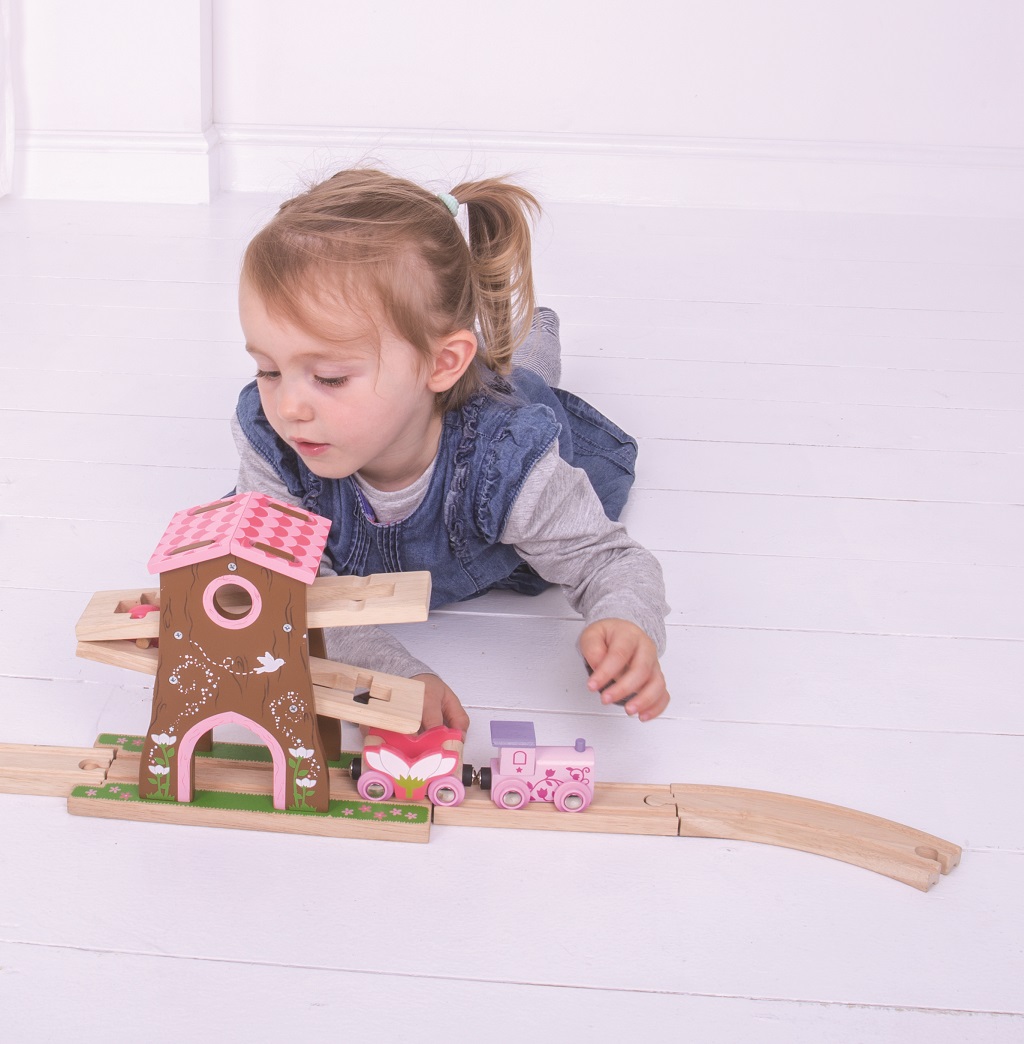 Bigjigs Rail Dřevěný vílí stromový dům s dráhou