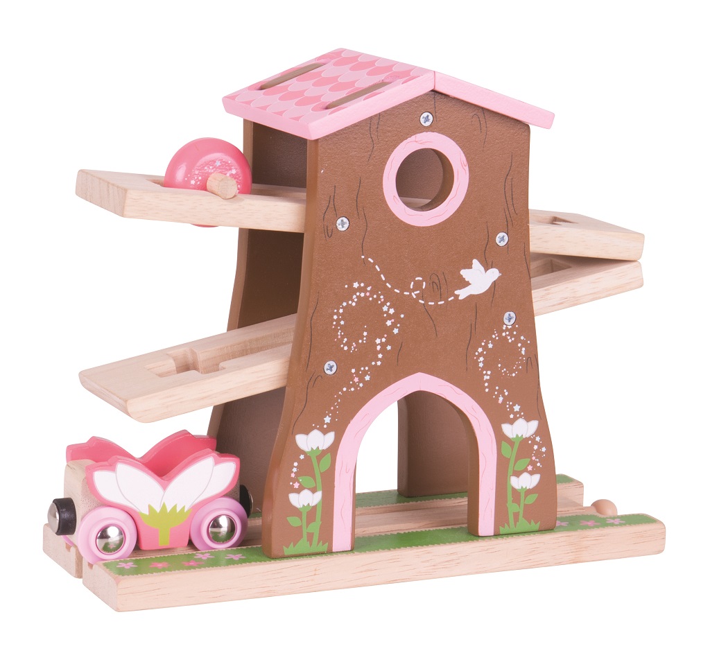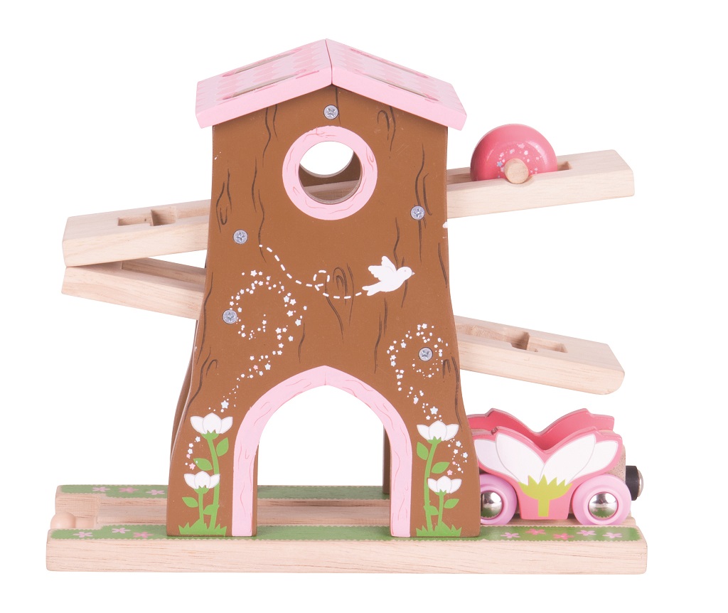 Podívejte se na valící se disk, jak uhání po dráze stromem dolů až do přistaveného vagónku. Skvělý doplněk k pohádkové vláčkodráze Bigjigs Rail a dalších dřevěných železničních souprav.