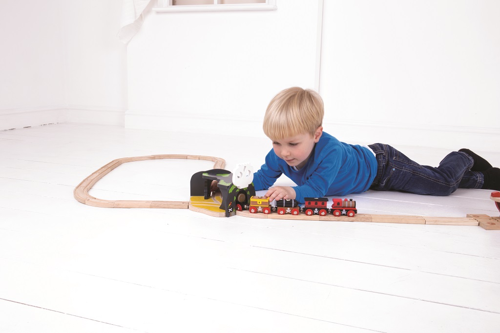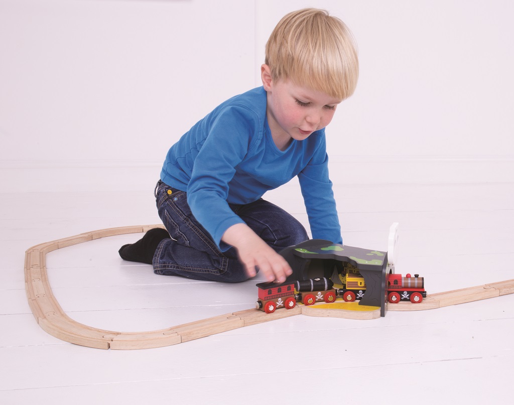 Bigjigs Rail Dřevěný tunel s výhybkou jeskyně lebka