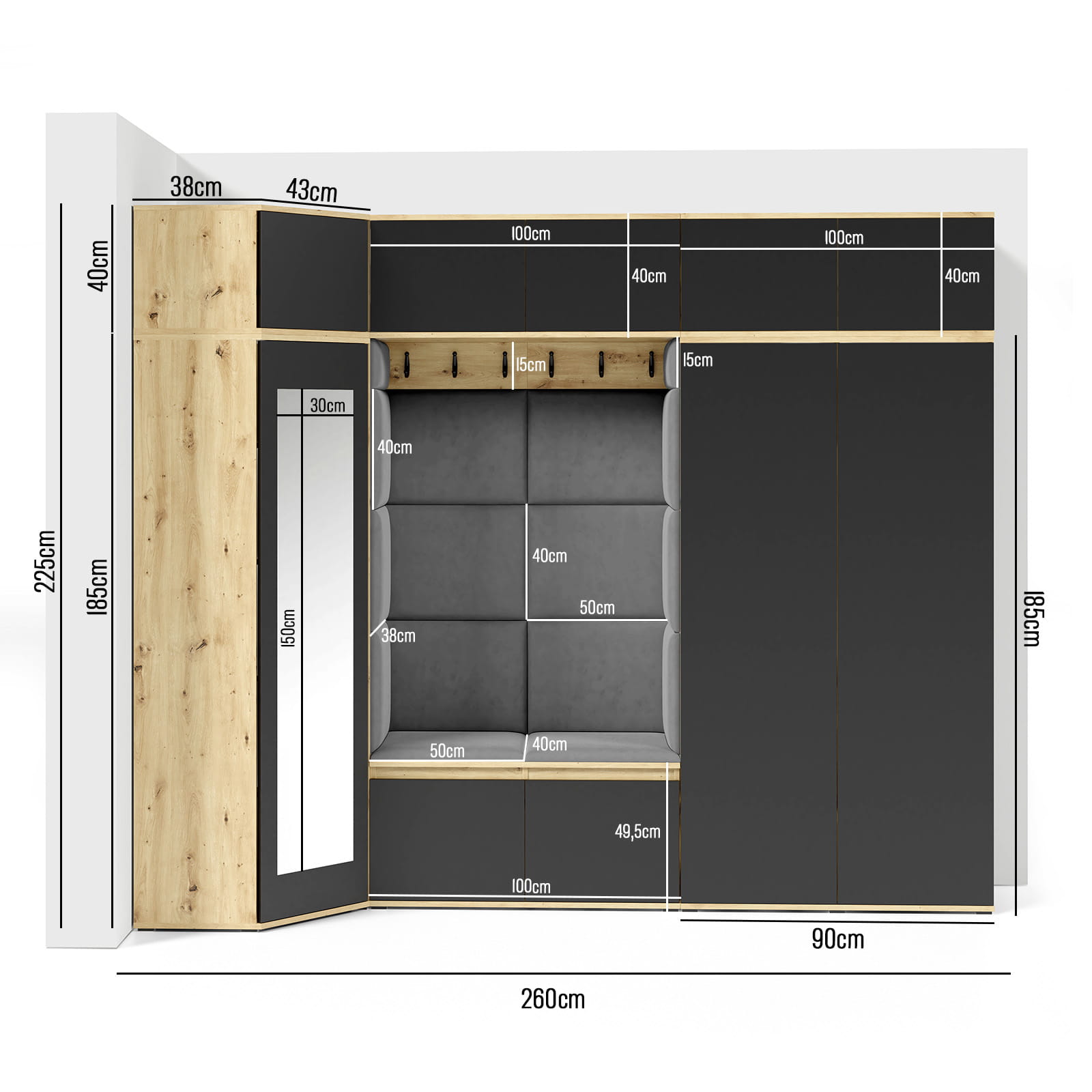 Eka Předsíňová stěna s čalouněnými panely Trinity 39 - Sonoma / Světlá hnědá 2306