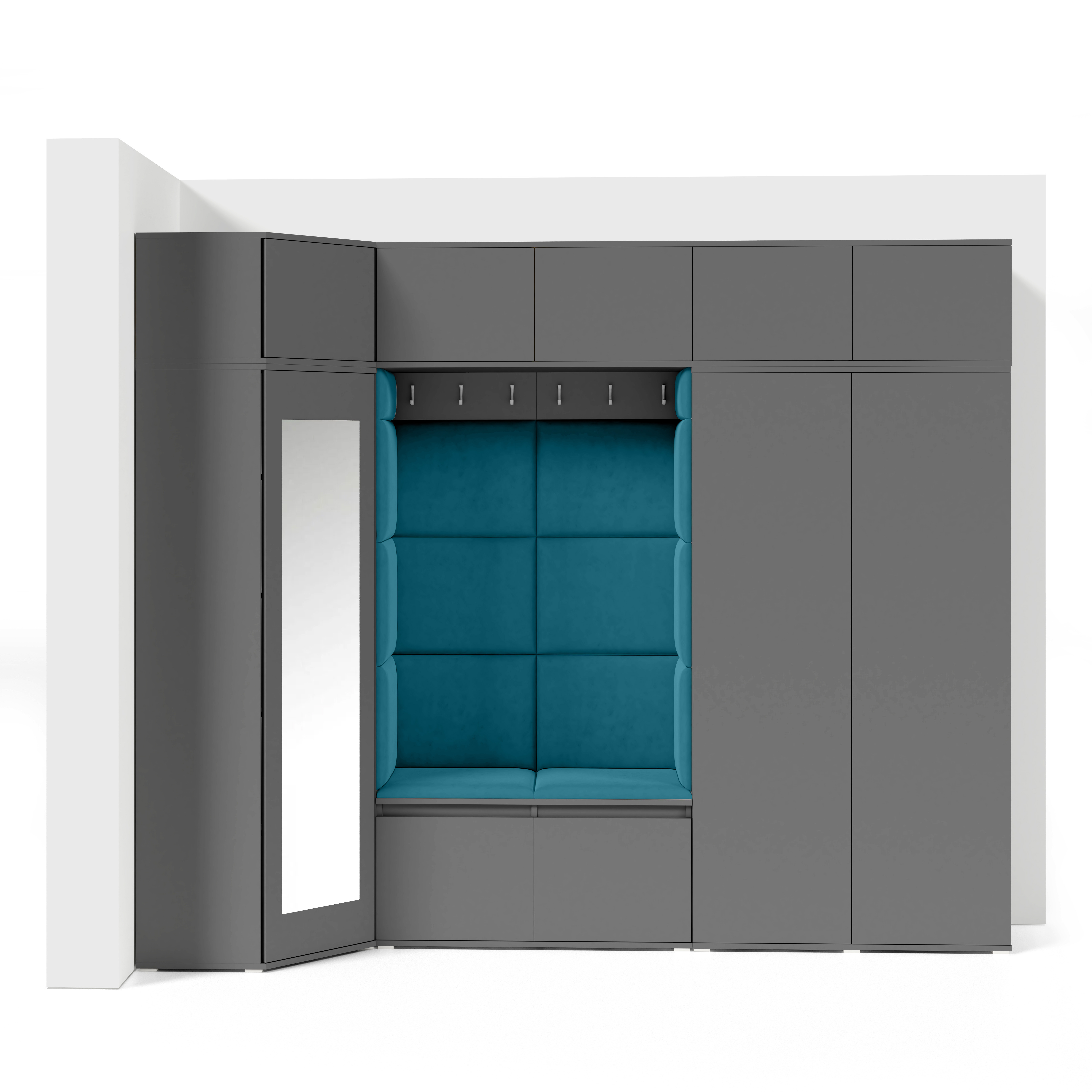 Eka Předsíňová stěna s čalouněnými panely Trinity 39 - Grafit / Azurová 2313