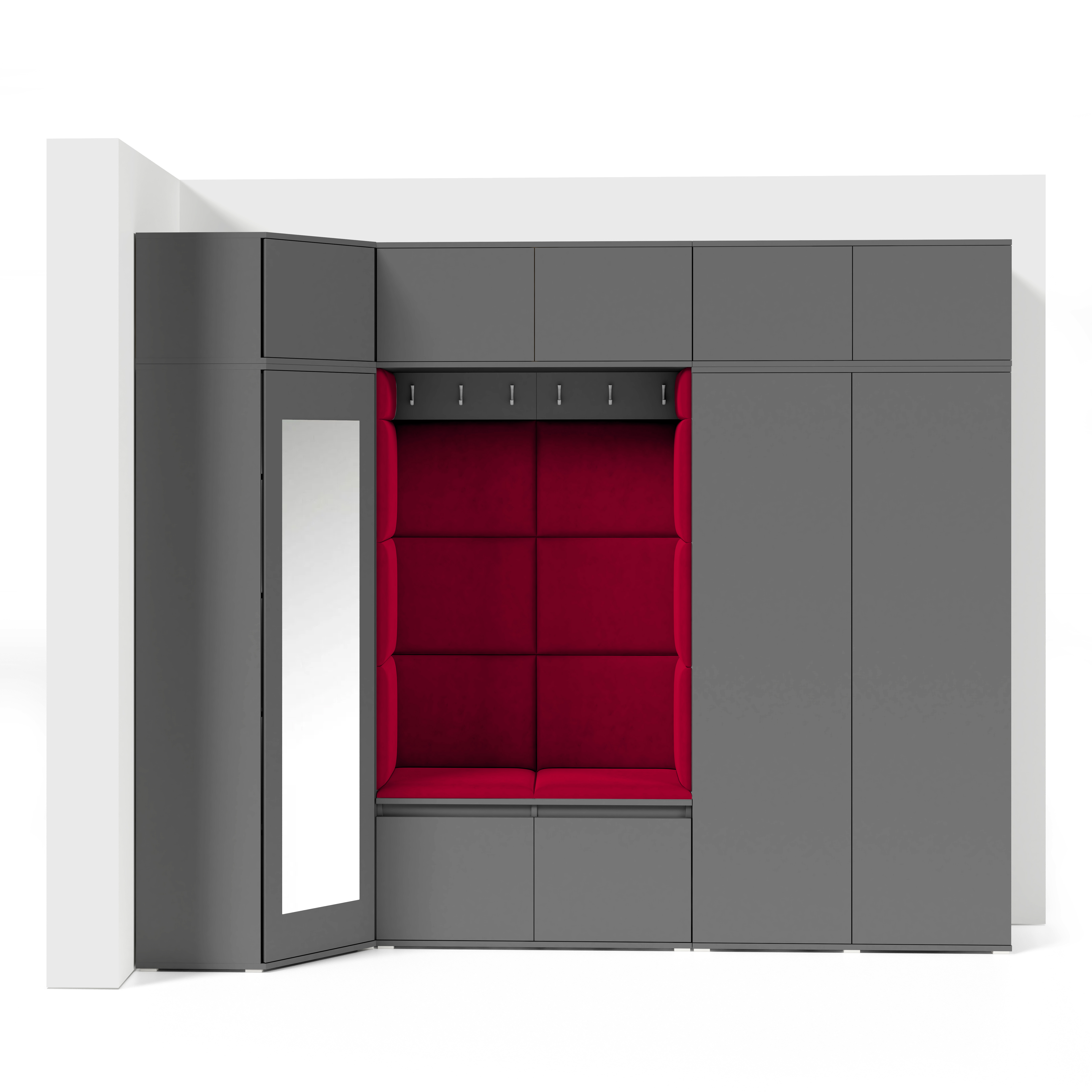 Eka Předsíňová stěna s čalouněnými panely Trinity 39 - Grafit / Červená 2309