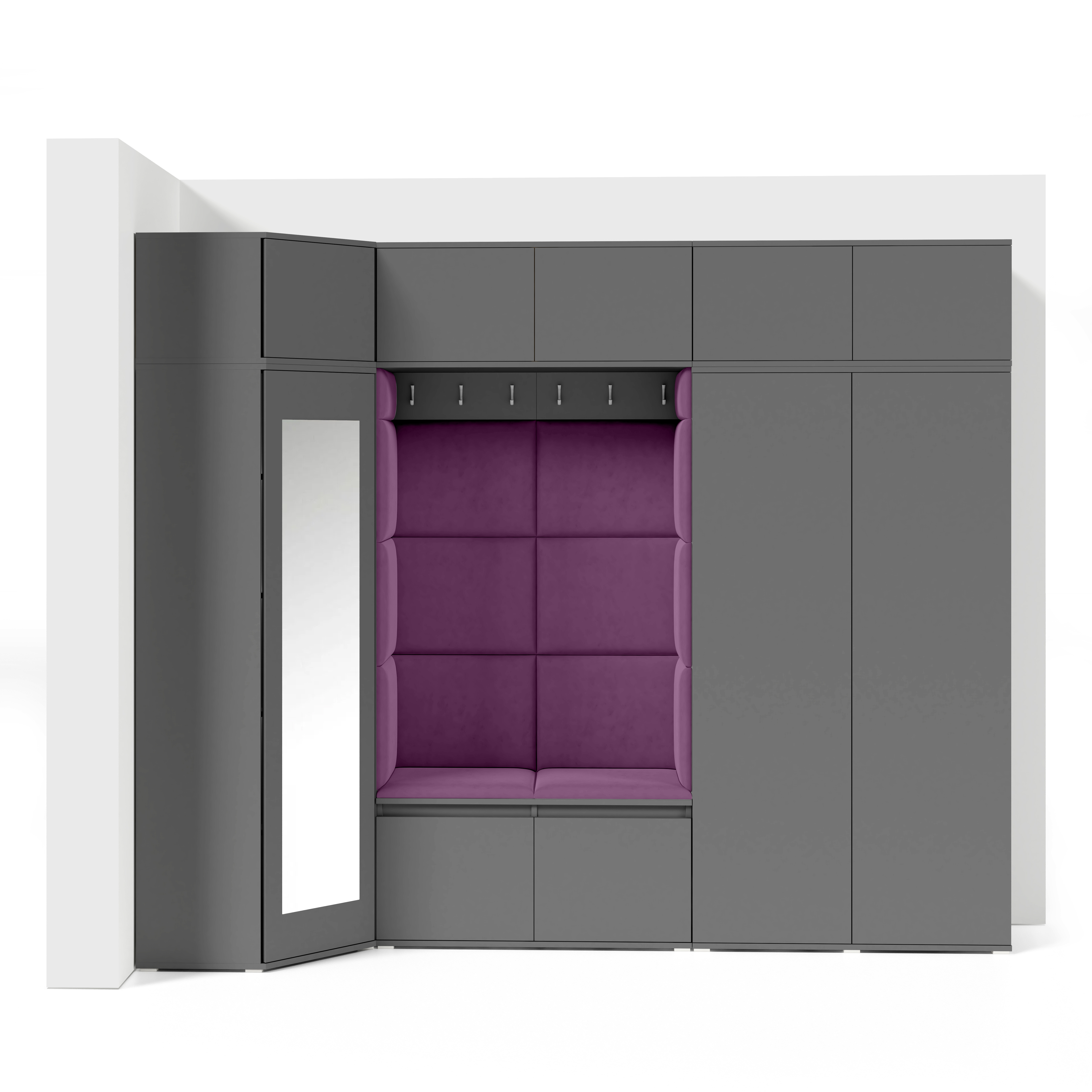 Eka Předsíňová stěna s čalouněnými panely Trinity 39 - Grafit / Fialová 2311